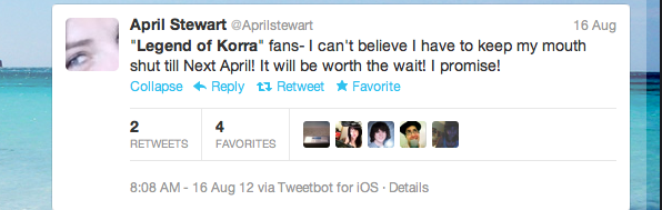 http://avatar.wikia.com/wiki/User_blog:Random_Ranaun/Grey_DeLisle_reveals_details_about_her_new_Legend_of_Korra_character