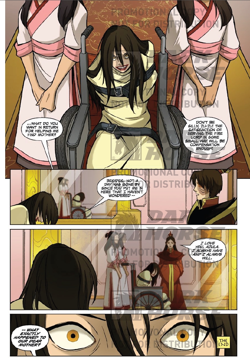 I could actually care less about the MILF, I'm just glad we're getting more Azula. That beong said, if they go the redemption route with Azula (and that's a big "if"), I can see Ursa's involvement being of particular importance. M&B even said (I can't remember if it was an interview or comic panel) that one of Azula's biggest issues is that she honestly believes her mother didn't love her.