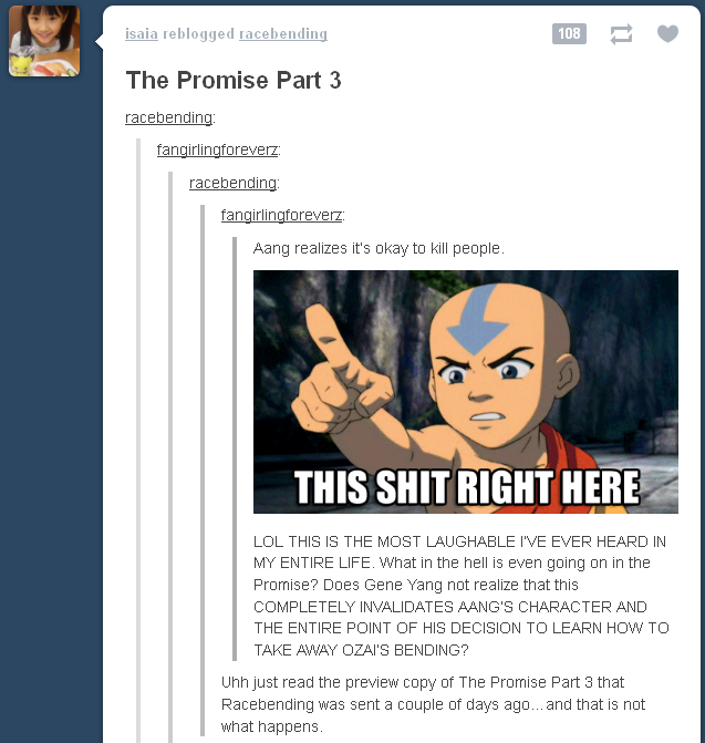 I actually really like how Zuko's been written. If anything his side of the story has been the best so far in the Promise.