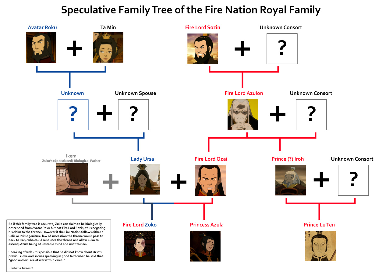 not to mention that the Roku/Sozin bloodlines would go to a whole new level in this one: Zuko turned out honorable and ended the war, when he has both Roku and Sozin's blood in himself, whereas Azula would be of pure Avatar ancestry yet she turned out the way she is because of upbringing and being too much in the influence of Ozai. it's like nature vs. nurture revamped or something wow....idk guys my head is about to explode!