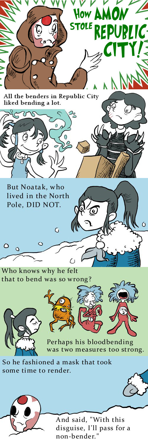 It really mystifies the hell out of me that the Firemen in Republic City aren't firebenders. They can put flames out by gesturing at them. How is that not the most valuable skill?