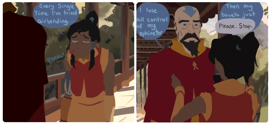 Sometimes Meelo’s special airbending skill doesn’t work right, if you get where I’m going.