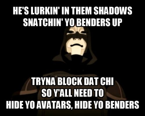 Maybe something will come out of book 3 with some Spirit being a bit chaotic if Korra gets really on a LAW kick.