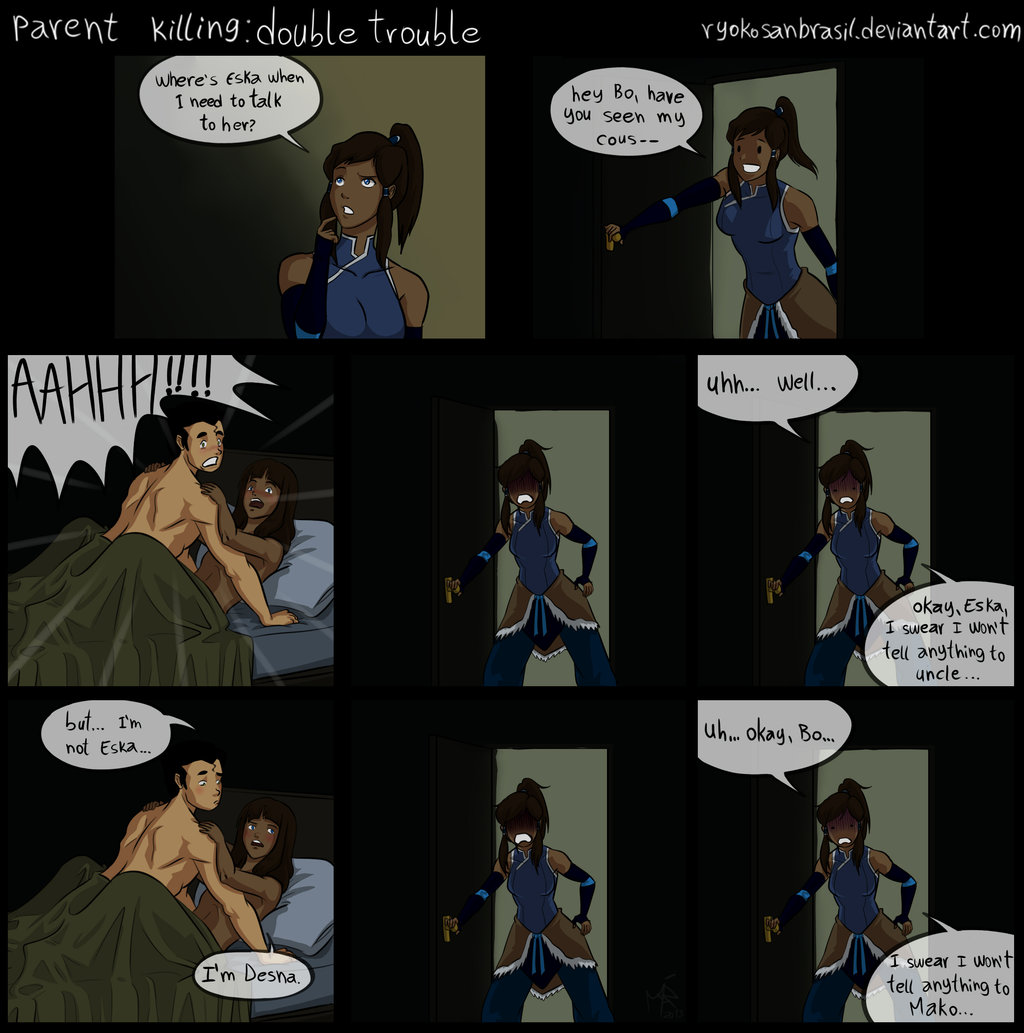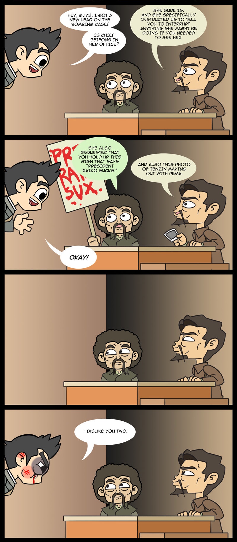 Did Tenzin or Asami just walk in on them? I'm guessing Tenzin since it seems like they'd be on Air Temple Island, what with the ring-tailed lemur and all.