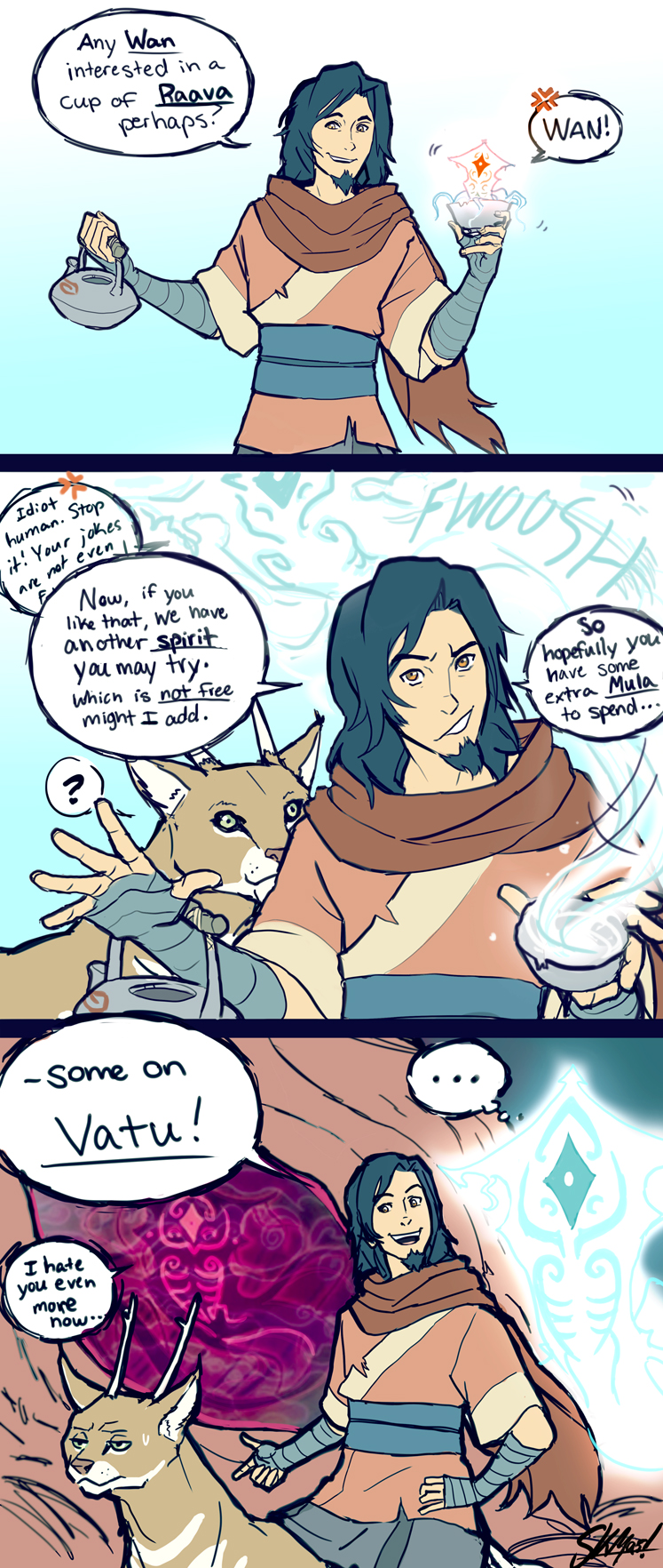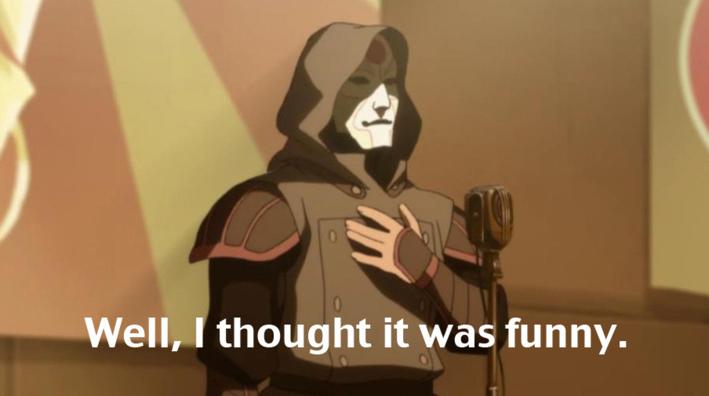Chaotic chaos Vaatu with a sense of humor versus big sister law and order with sass Raava would lend well to that whole theme of balance without being evil versus good.