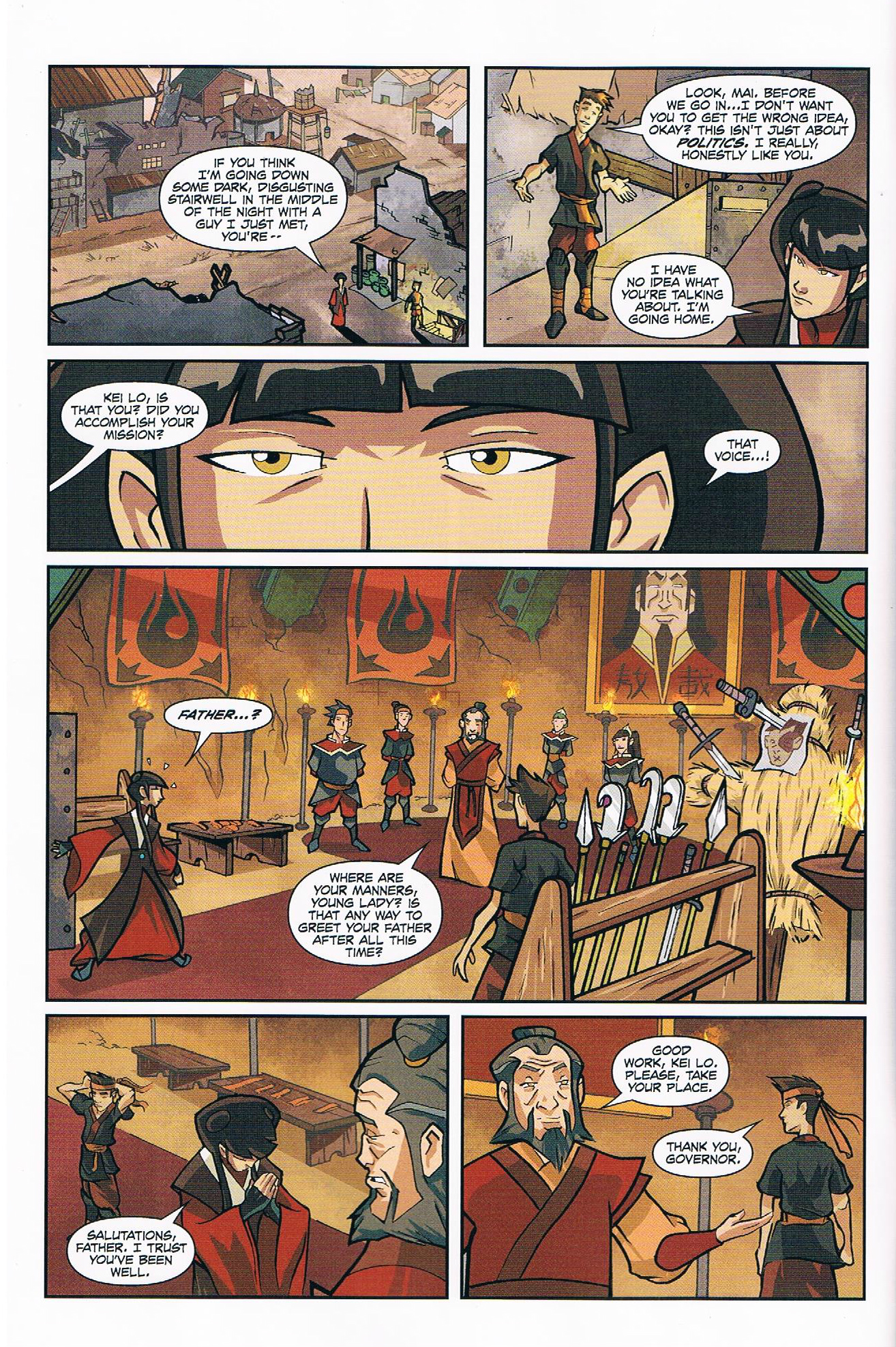 Can we take the time to appreciate the first panel of this page? Mai's wrist weaponry on display! Fucking badass! Never saw that on screen in the show.