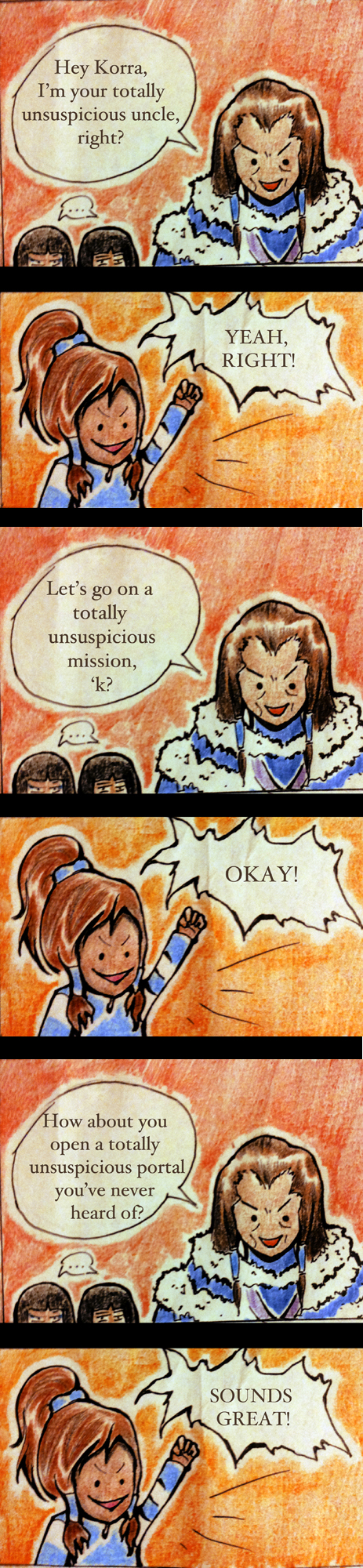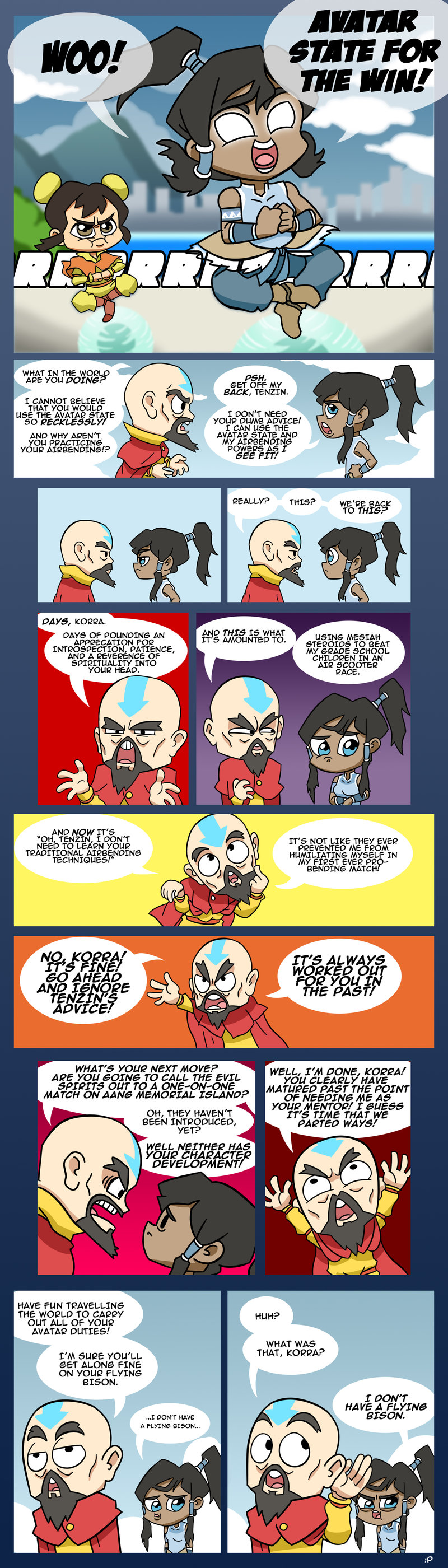 As for the Bravery issue, I did read your post, perhaps closer than you expected me to. While you did begrudgingly agree that Korra is brave, your context around that admission downplayed the trait and suggested it was the result of "stupidity." That's what I took issue with.