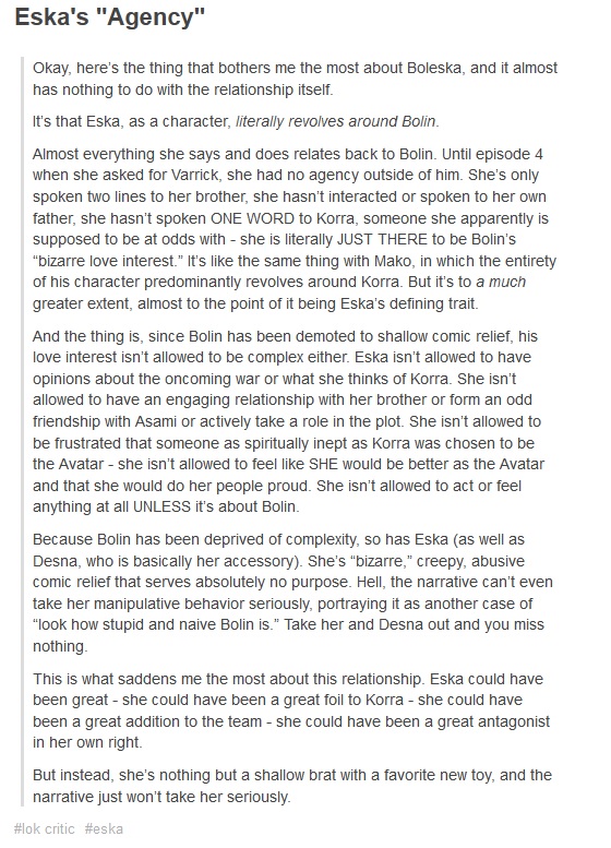 a) Korra is too damn whiny. Seriously, shut up for like 5 minutes, hun.