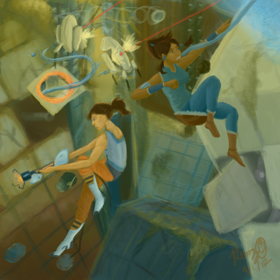 Last night I had a weird dream that Mushu was Korra's sidekick. But she had a lot less tolerance for his antics and threatened to duct tape his mouth shut at one point. Anyway, it made me start looking for Korra/Mulan crossovers and I found these.