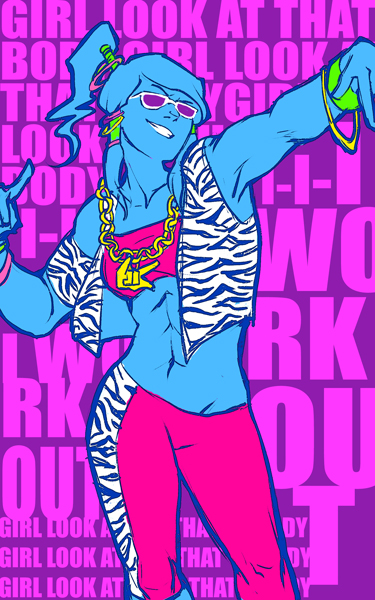 I think her head is too small. I know you're trying to emphasize her buffness, but it looks like her shoulder and whole arm are jutting out three feet sideways away from her head towards the viewer.