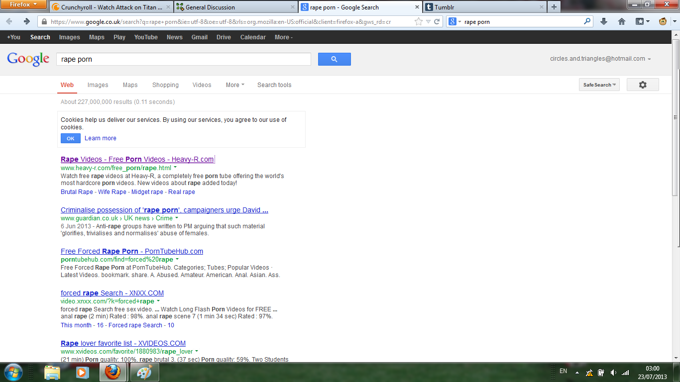 Blocking all the porn is pretty damn inconvenient, specially when people like being DISCREET about viewing it, and we're talking about english people here, mind you, so that's kind of a big deal. As for the "rape" ban, nothing of value is lost. You can hardly google some cartoons without bumping into porn and sometimes REAL fucked up shit at that, and like >>382060 said it's easy to bypass, so it's more of a control than anything. Kids don't need mind-scarring pics of the characters they like involved in rape, realistic gore or crap like that on their heads when they go to watch a cartoon. Actually it would be funny if England suddenly became way more productive with less internet porn. I mean, people lived without it pretty well for the longest time, and some of the time spent looking at porn/fapping/resting can probably get other uses too.