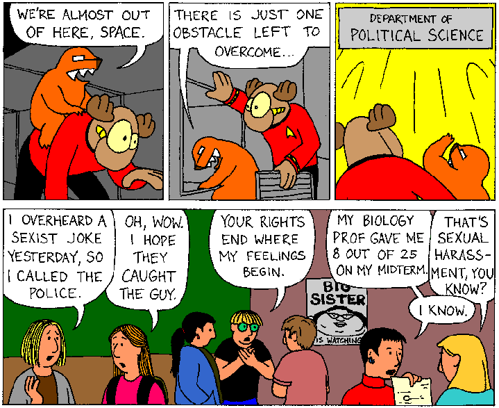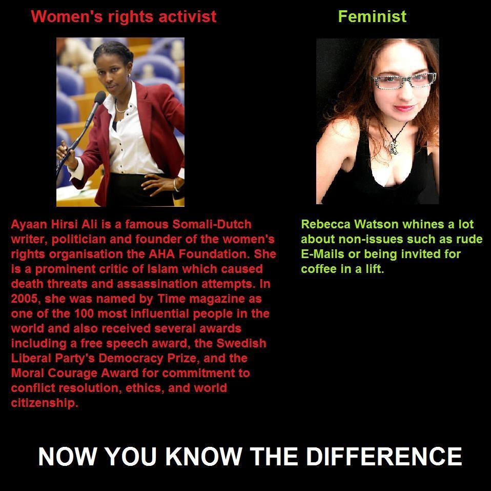 Why do you think it was okay for this guy to follow her into the elevator? Why is everyone reacting so negatively to the notion that him asking her back to his room on such a short time frame was technically harassment? These are questions you have not answered, and have implied, through your postings, that she should have gone straight back with him, and if anything happened, like him surprising her by clocking her in the back of the head with a lamp or something, she should have just defended herself, even though she was unconscious. By what you are posting and the points you are defending, you are implying that her refusal to put herself in potential harms way was less of a defense than physical violence. And there's a logical disconnect there.