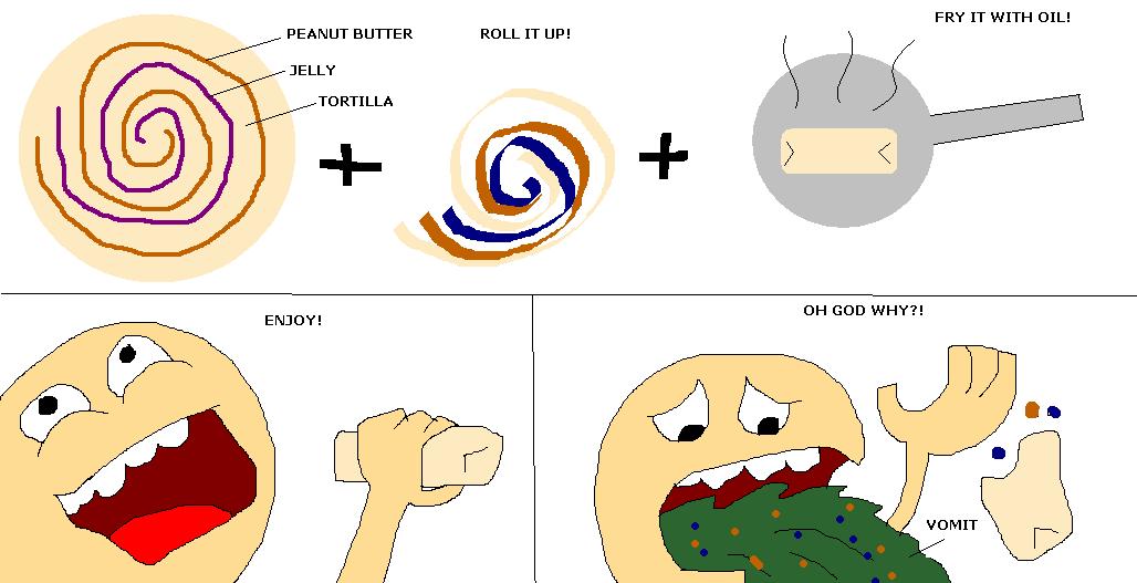 Once we made some basic brownies, powder in a box shit. It needed vegetable oil or something. We didn't have that, but fuck going out to buy some. Suffice to say corn oil is not an adequate substitute...