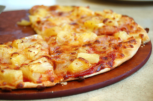 Pan (well oiled) --> crust --> meat (drain out of marinade, but make sure some gets on the crust) --> cheese --> veggies --> sauce