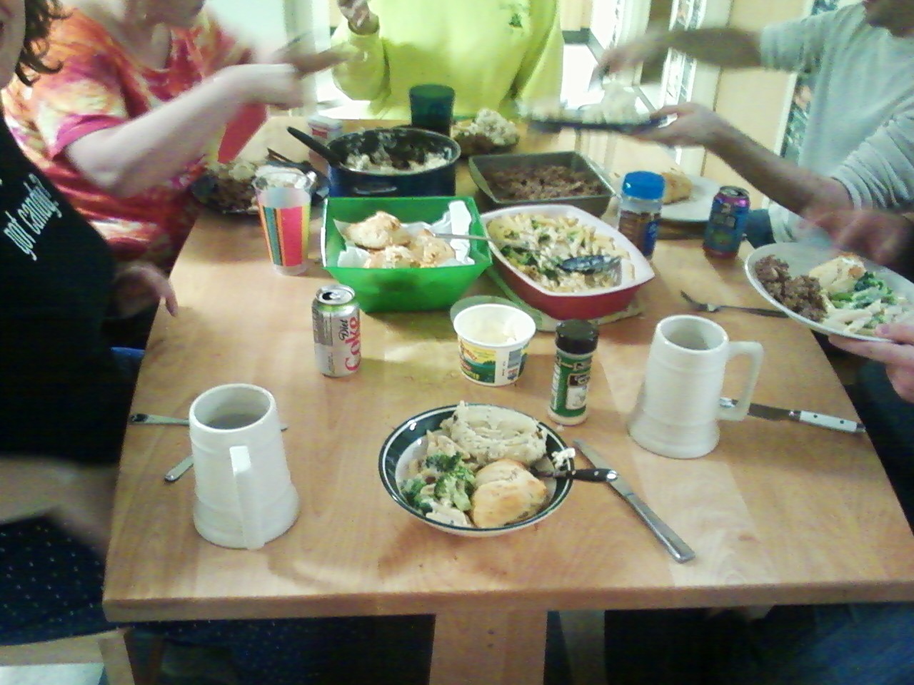 Suite Dinner, Fuck Yeah!I think we are gonna make this a weekly thing.I made the Pasta-Dish-Thing, I don't even know what it called, I just winged it, and it was tasty.