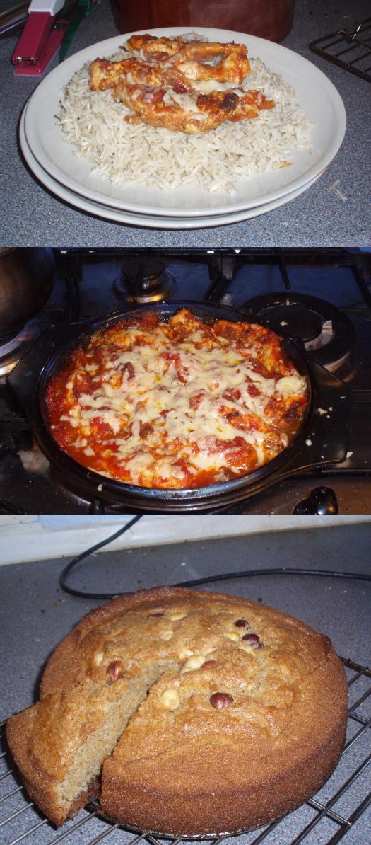 Baked salsa chicken on wholemeal rice with cinnamon & nutella cake for afters.So full. ;A;