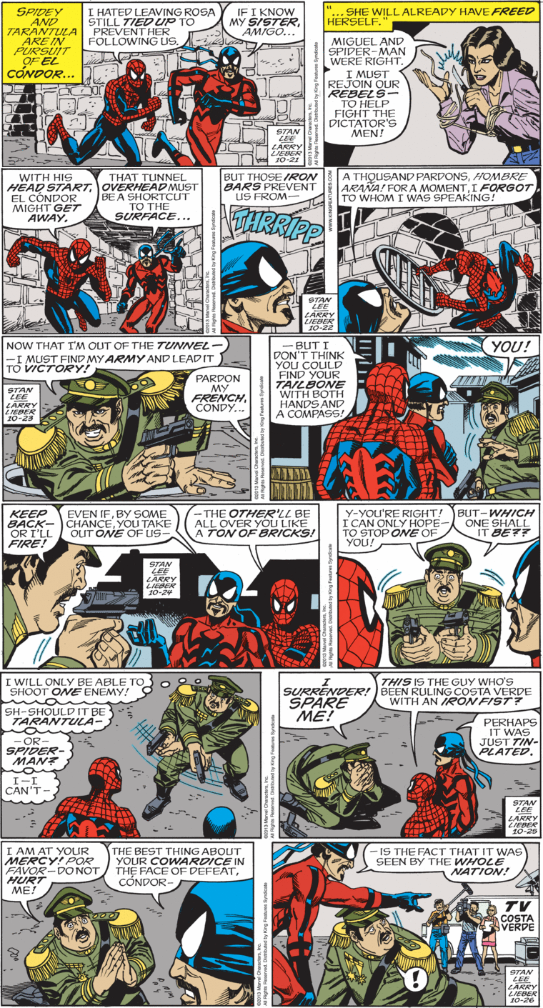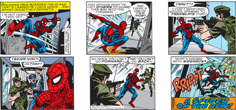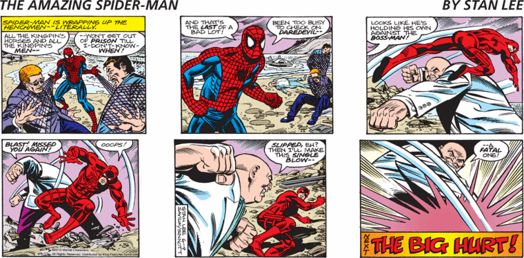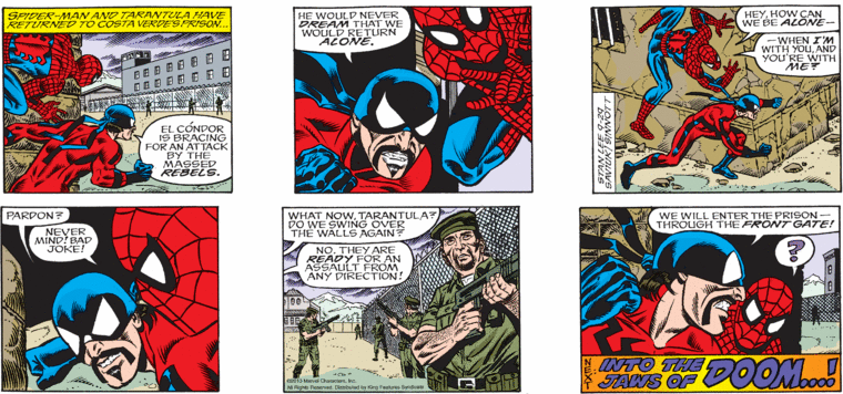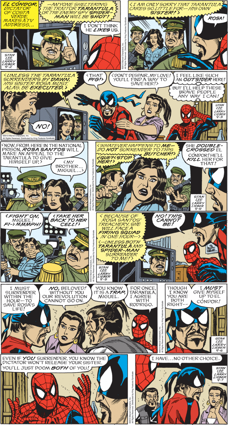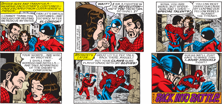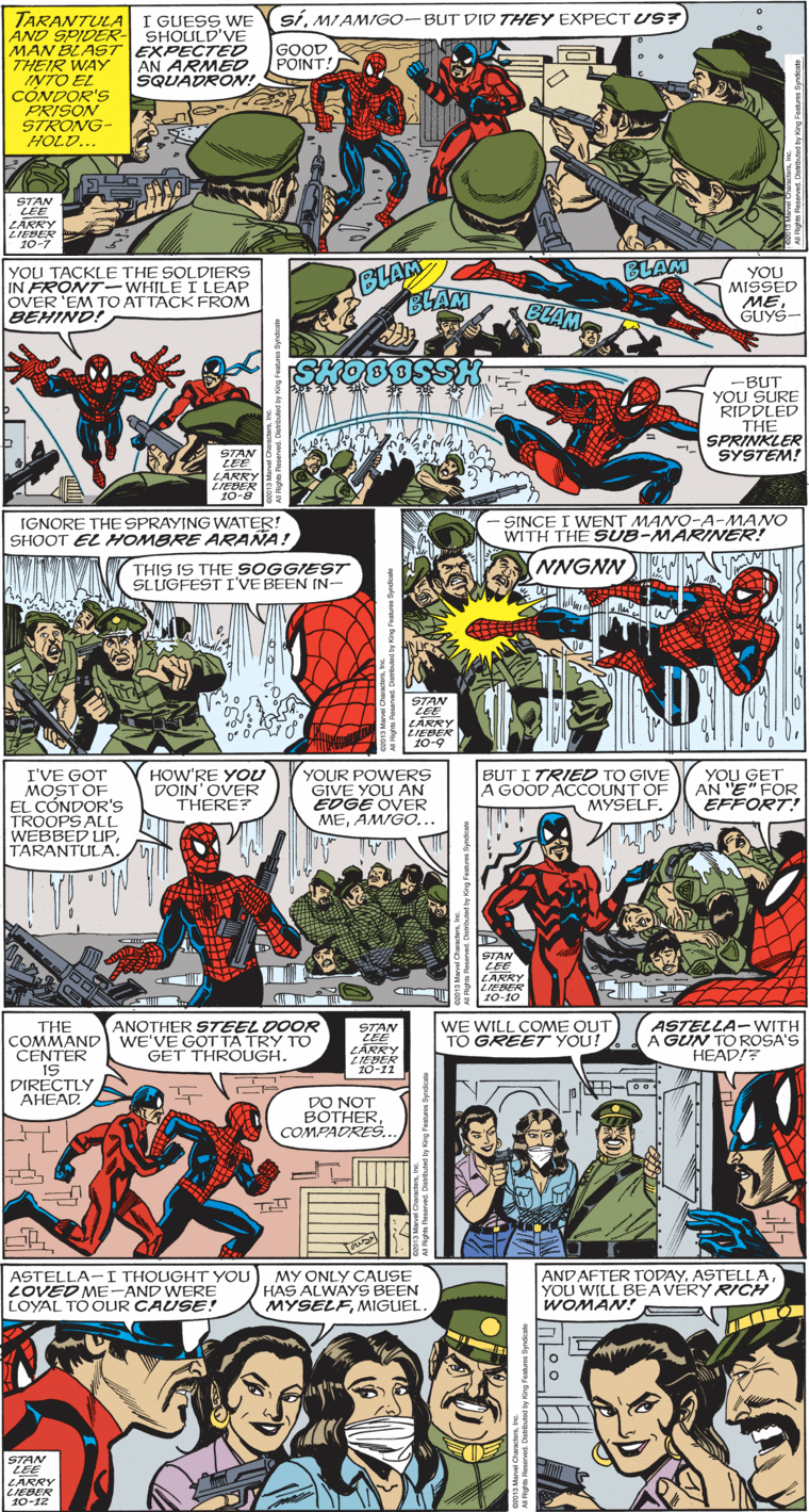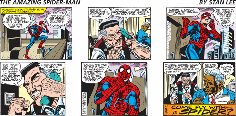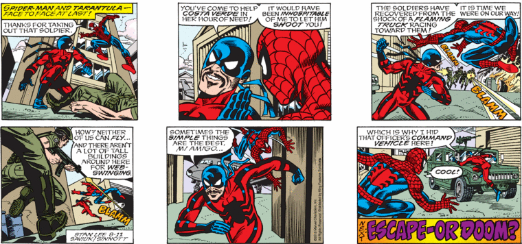 >>216625I actually enjoy newspaper Spiderman more than regular comic Spiderman. It's like a time capsule of a simpler, nicer time in comics.