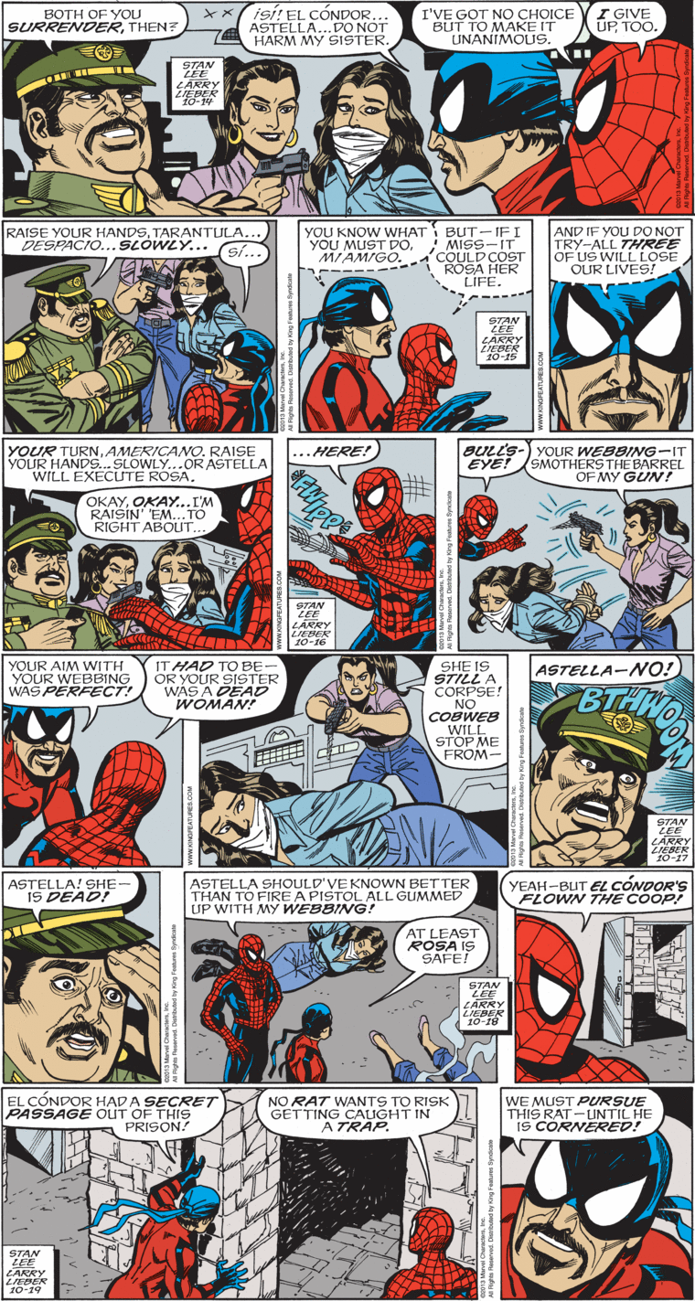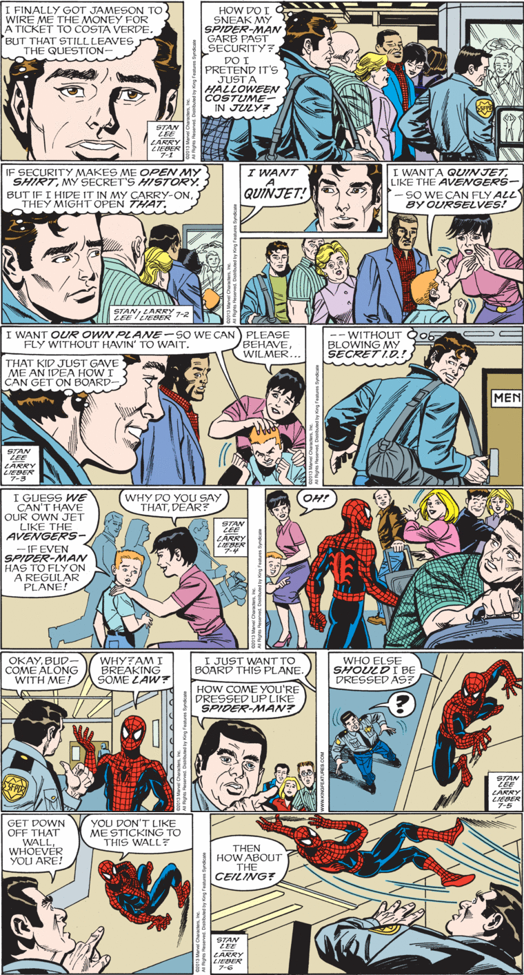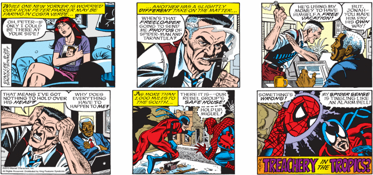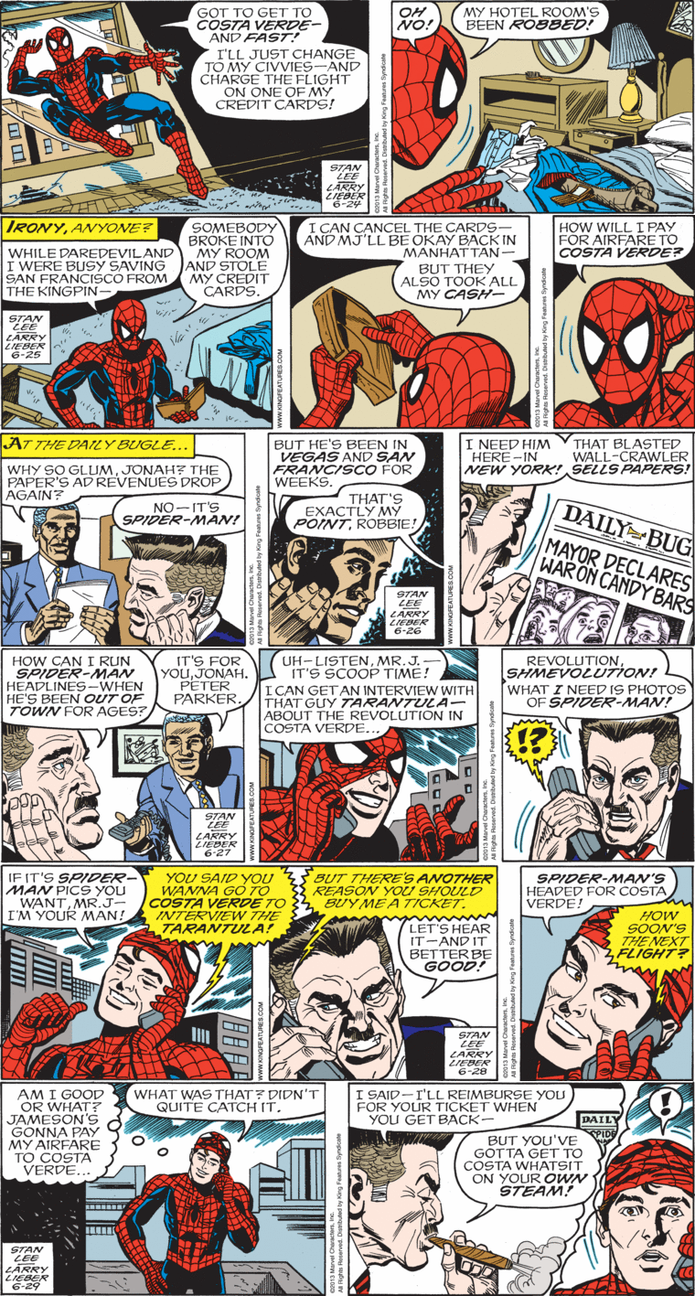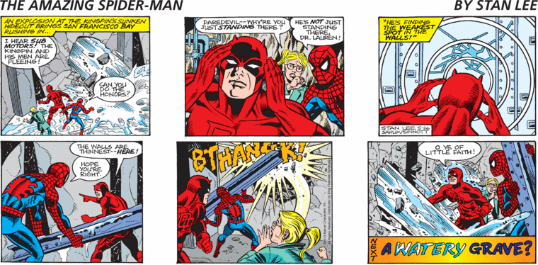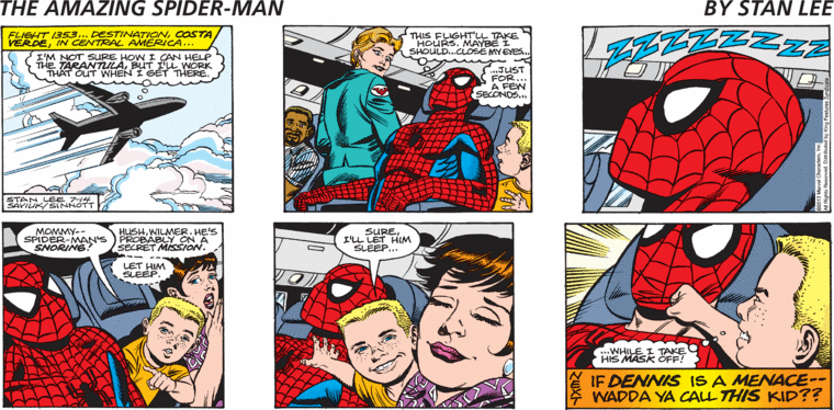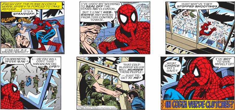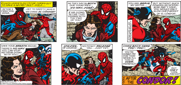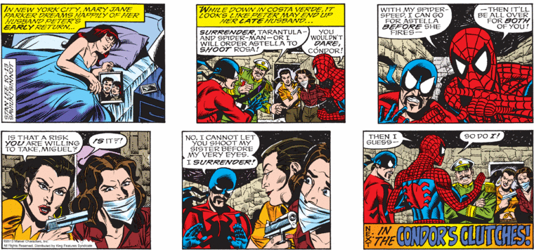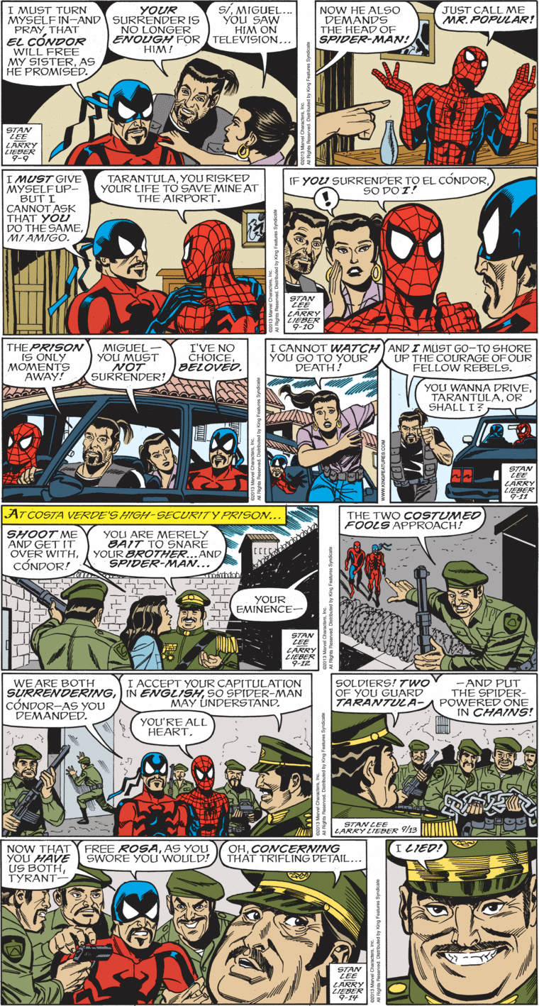 >>216625I actually enjoy newspaper Spiderman more than regular comic Spiderman. It's like a time capsule of a simpler, nicer time in comics.