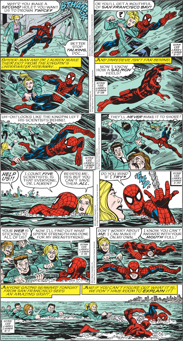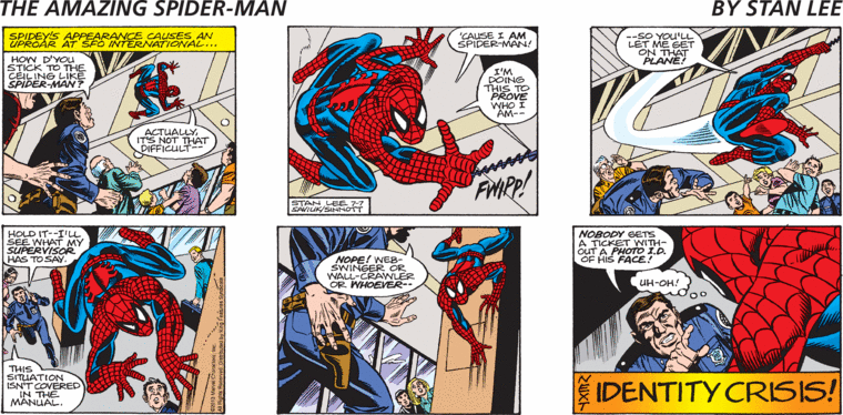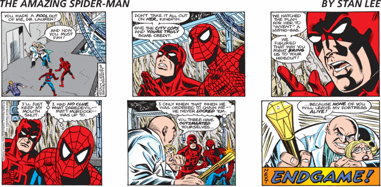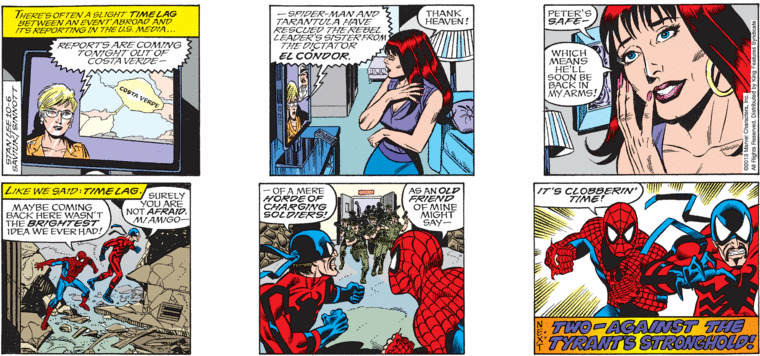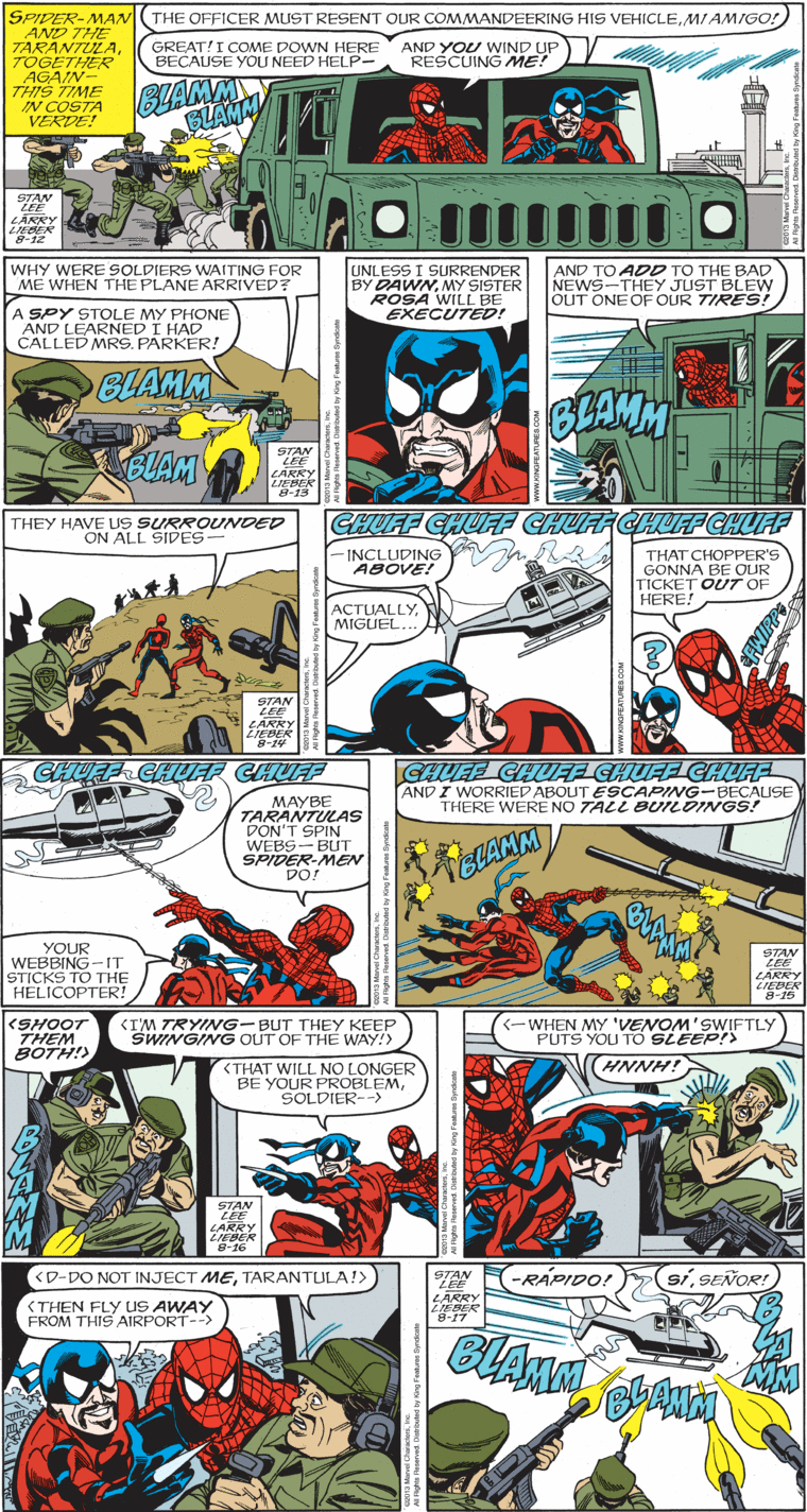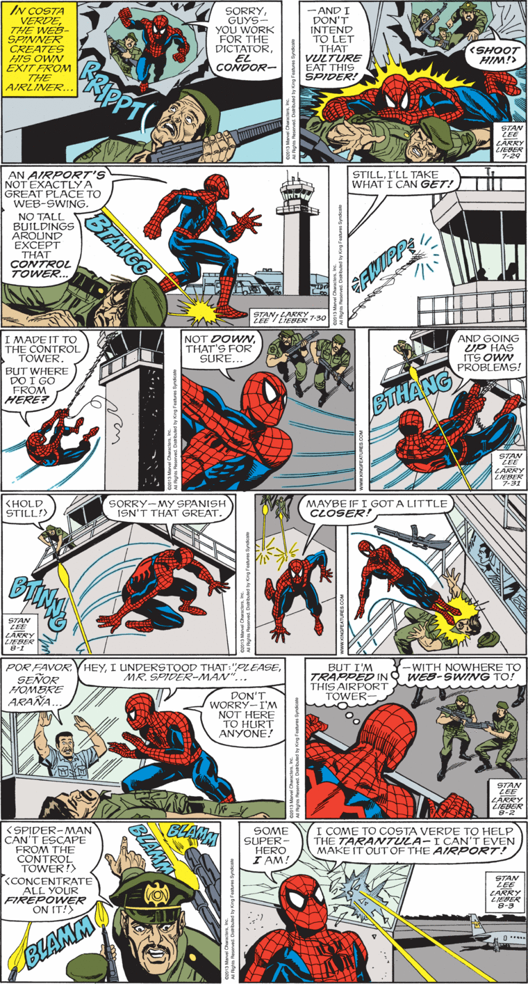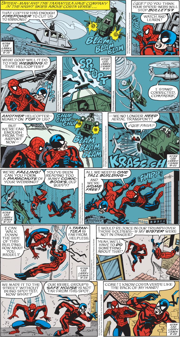 >>216625I actually enjoy newspaper Spiderman more than regular comic Spiderman. It's like a time capsule of a simpler, nicer time in comics.