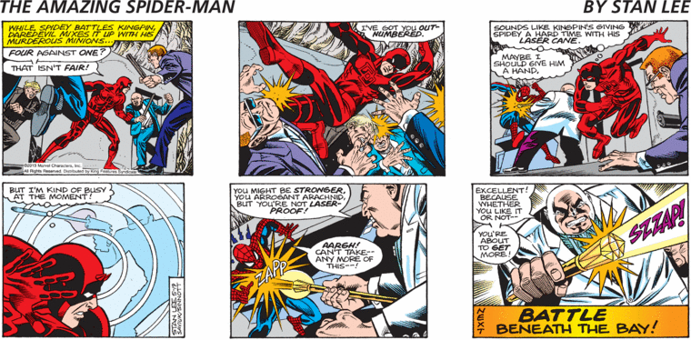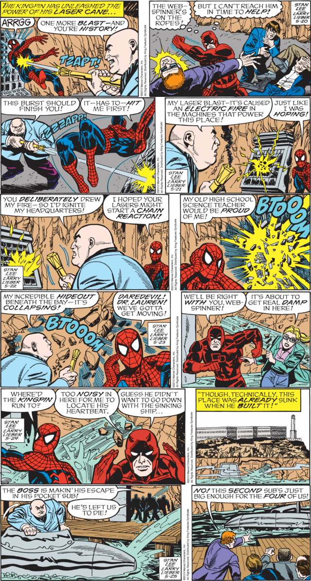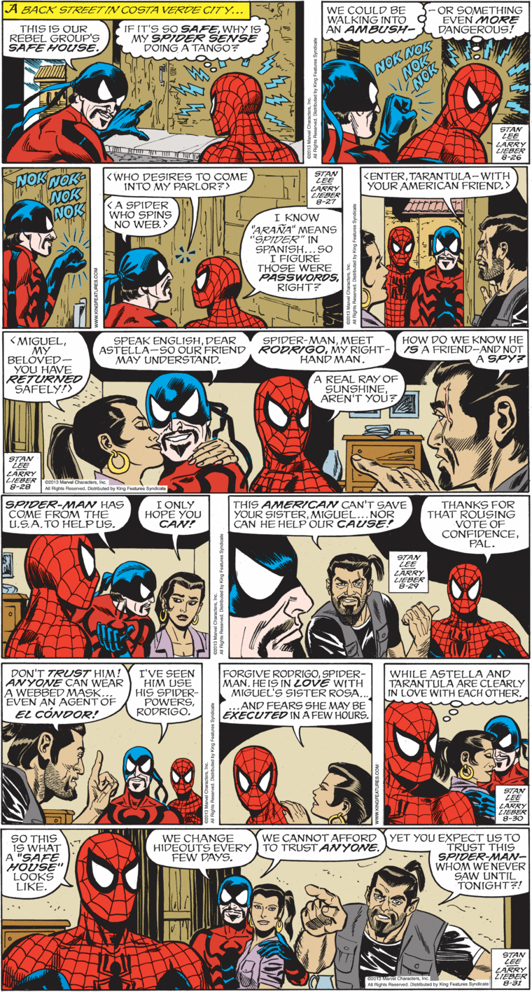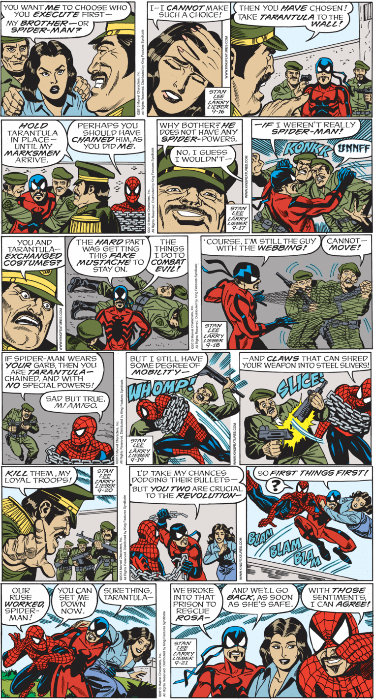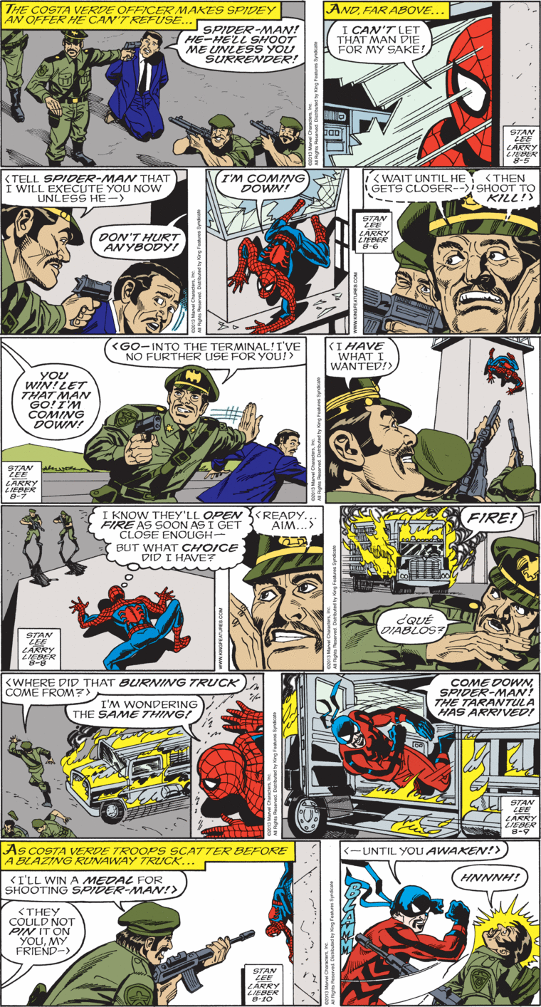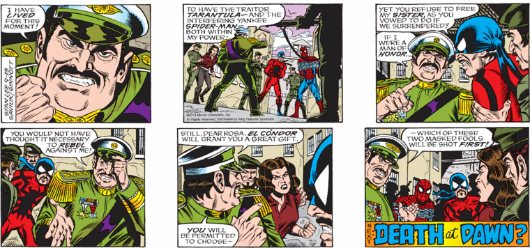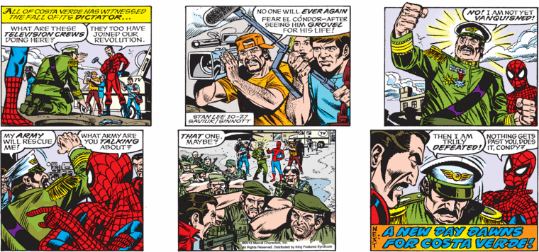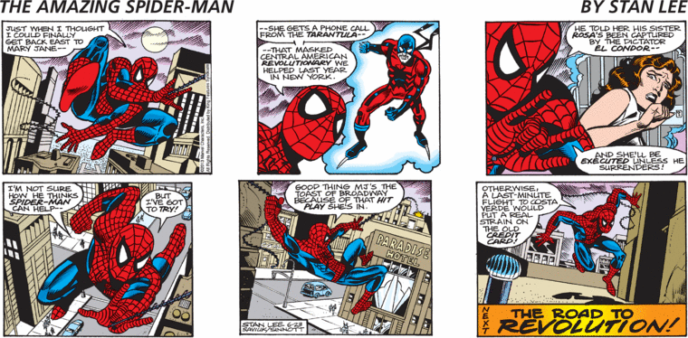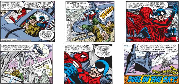 >>216625I actually enjoy newspaper Spiderman more than regular comic Spiderman. It's like a time capsule of a simpler, nicer time in comics.