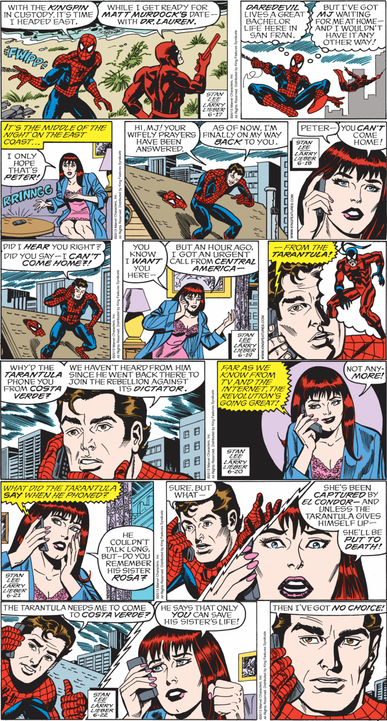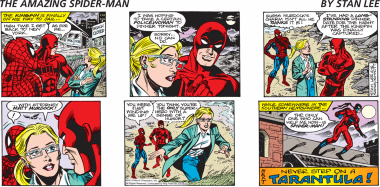 >>209420>>209422I don't follow the Spider-Man strip regularly: Did Daredevil never move back to New York in this continuity?