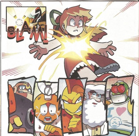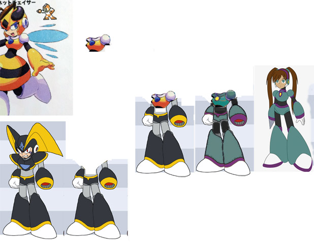 Tempo, on the other hand, has very, very little pointing at her profession. It's understandable that she would be less designed for her job than most Robot Masters, but in cases of other "children" robots becoming other things the differences still point very strongly at their role in the narrative. It's really something that a little reworking could change, but as is she doesn't really tell the audience what she does or why she exists. She looks like a standard robot. I understand the need to make her look more "generic" (and like it) to fit her identity crisis, but some people are still going to look at her and say "I don't get it, what is she?"