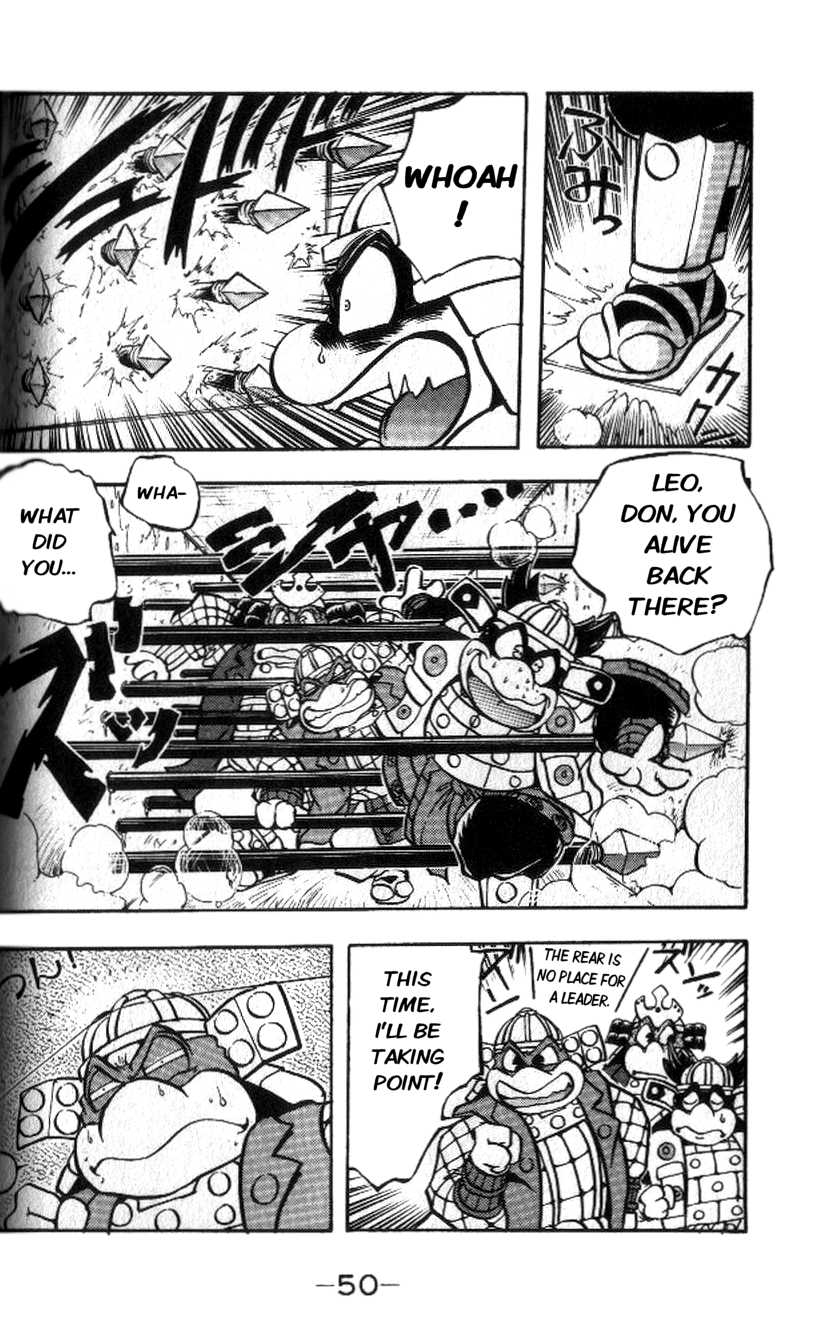 I never liked that trope. "Oh, they're robots? Great! That makes winning the fight 50x easier!" I like that the robots are treated as credible threats, and even throwing their standard fighting styles out the window and being unpredictable only buys them a brief window. The question is, will they be able to maintain this level of threat from these robots, or will they become just as easy to dispatch as the Krangdroids and the Foot's regular infantry?