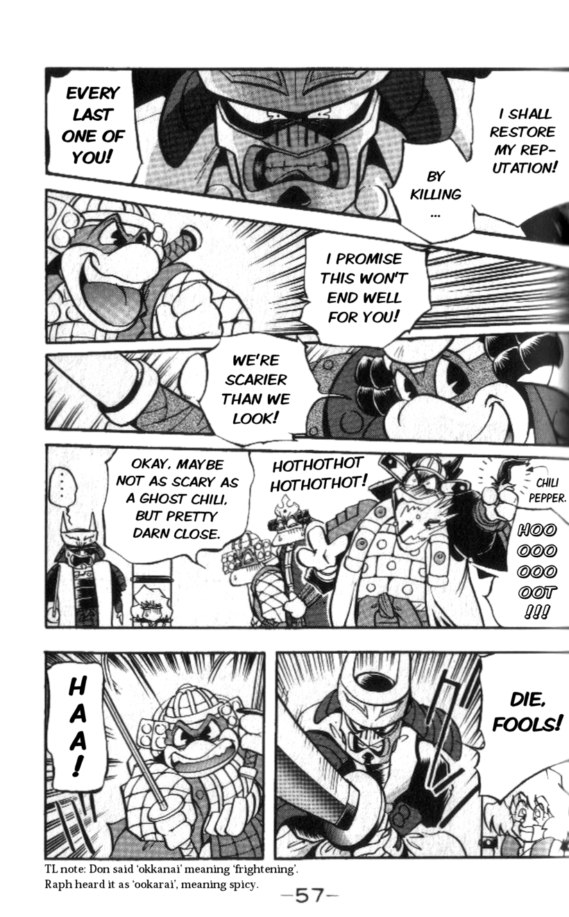 In any case, I do appreciate how they introduced the robot Foot grunts. Now the turtles can actually use their stabby and slicey weapons against them. Too bad their adaptive fighting skills seem like a way to accelerate power creep.