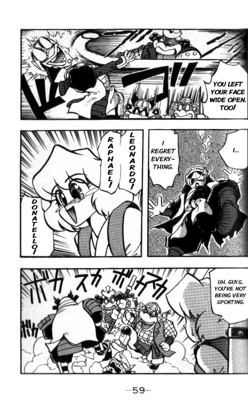 Shit needed Angelic Chorus to kick in at that bit like a Krang scream that sounded like one or something. Also Mikey going straight for Wingnut name was great.