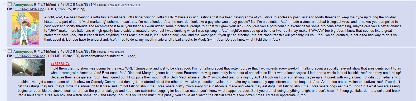 >>225909 Yeah, that Morty being a past Morty for our Rick seems like a popular theory. I think it's possible, but this show is so good at misdirection (I was so certain dumb Rick was gonna be the bad guy) that it's hard for me to be certain about anything.
