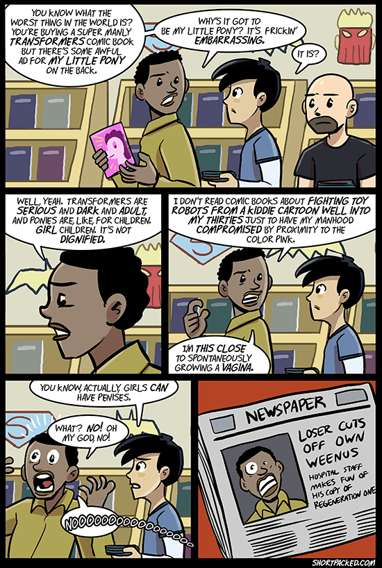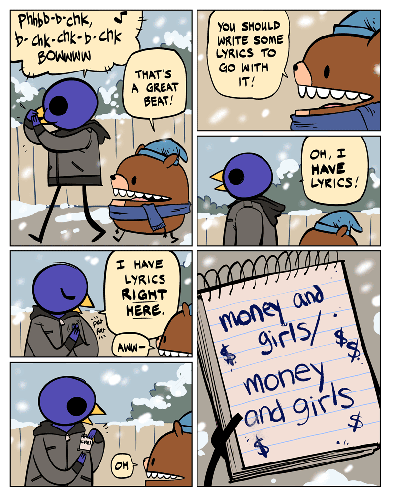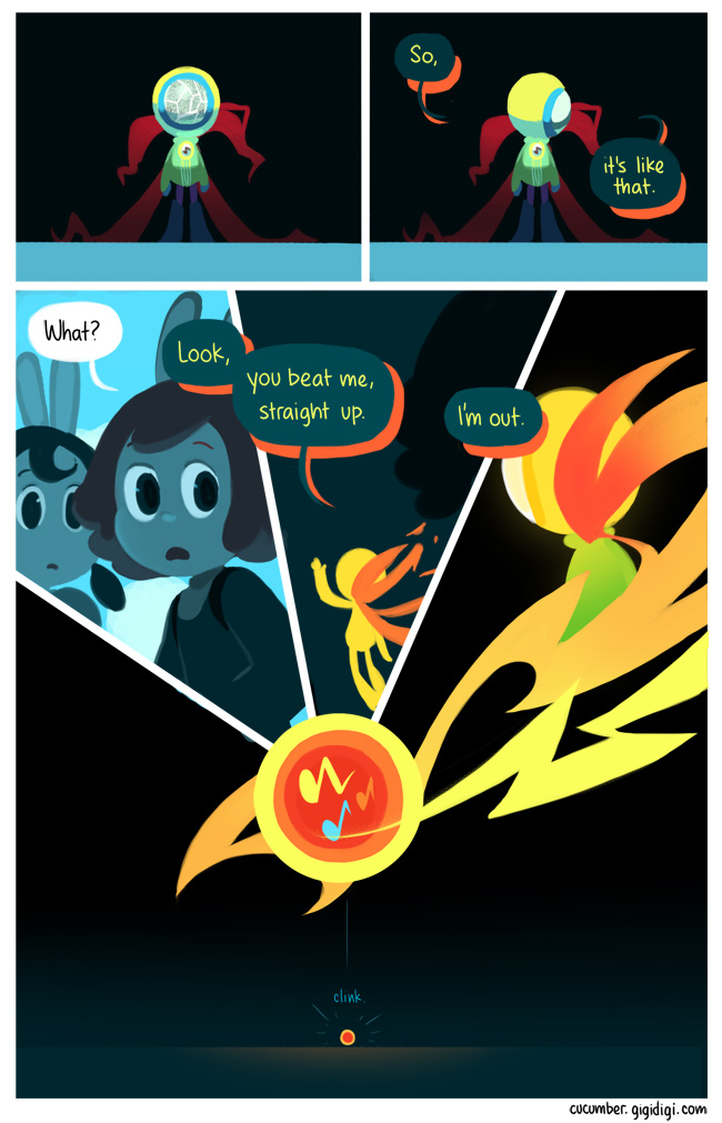 Kind of on the same topic, Coela is going to start her comic Platinum Black sometime soonish. It's kind of like The Meek in that it was a pet project with a long history (and that sometimes there's non-sexualised uncovered boobs, I guess) and she has to juggle her job and MGDMT in addition to this new story. She has someone else to do the colours though, and she hasn't missed an update week for MGDMT yet, so hopefully it won't share the same fate. As far as I can tell Platinum Black is built on concepts that I'm super interested in + use in my own stuff so I just really hope it succeeds. I hope it succeeds and that none of its fans are like the MGDMT commenters.