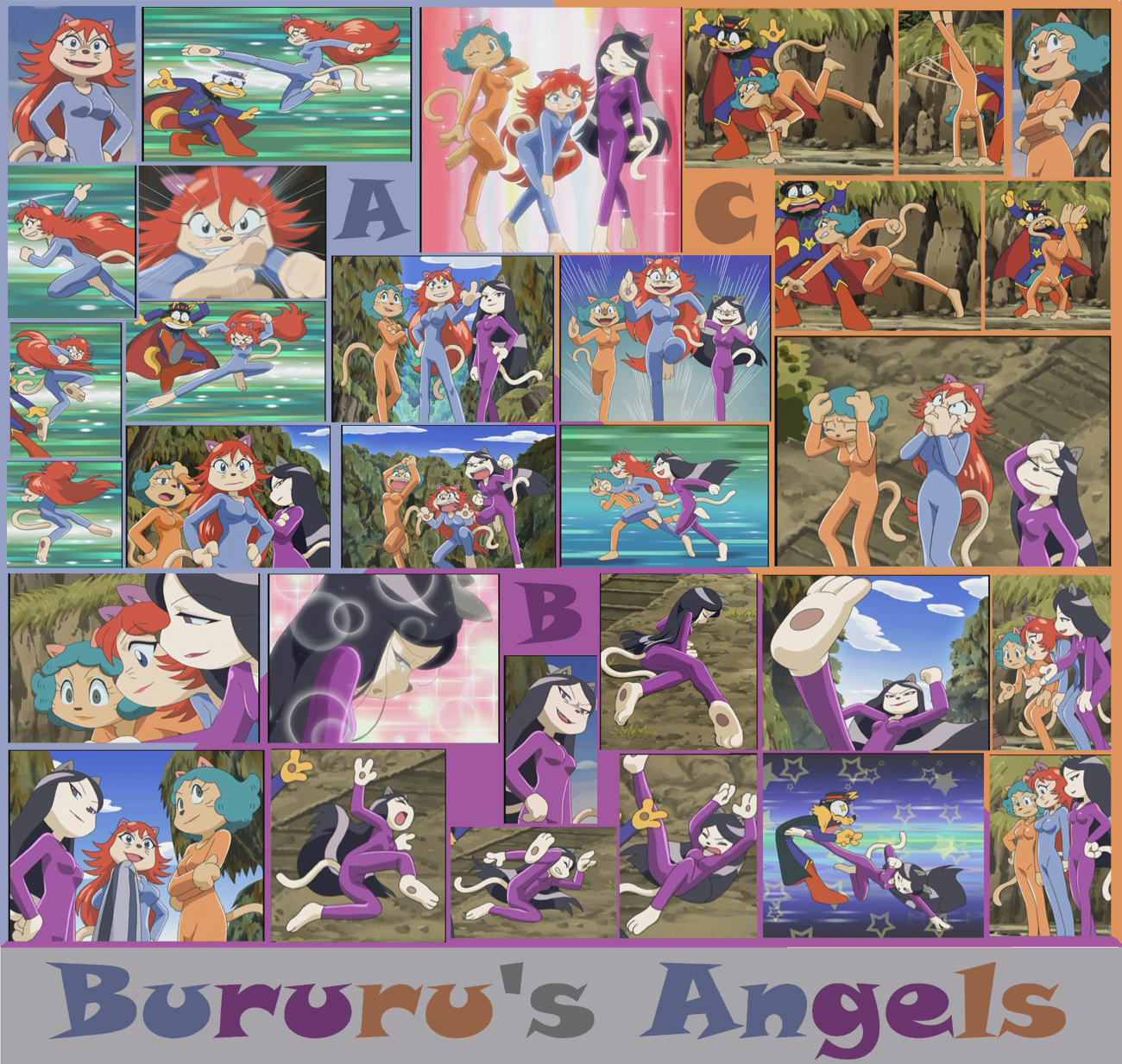 Here, have some Angels! No, not Charlie's.... Bururu's Angels, from Kaiketsu Zorori. Sadly, they only ever appear for one episode. This is a magnified scan of the DVD's cover (yep, I bought it... man are Japanese DVDs terribly expensive!)