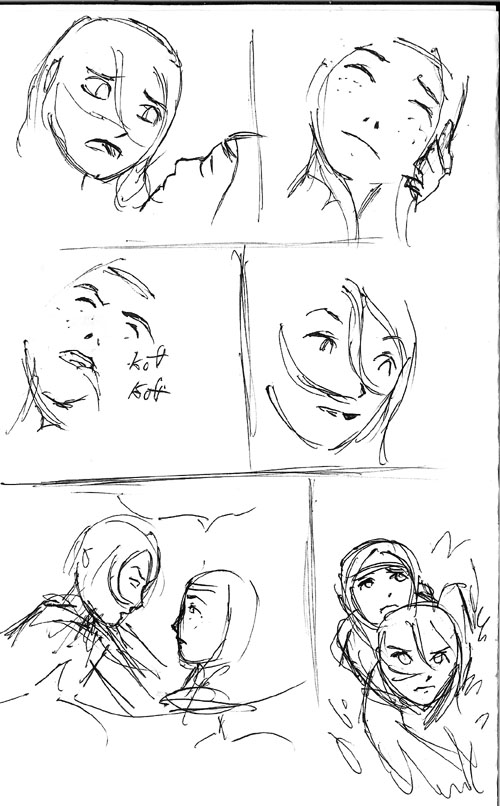 Page 41 p2: Squire acknowledges the kill with a look. In my mind, it's her first kill, but I'm not sure we talked about it in length. p3: No time to waste, the Squire goes to secure the Princess, when an off panel yell calls her attention. p4: The last two bandits from the collapsed tower have arrived.