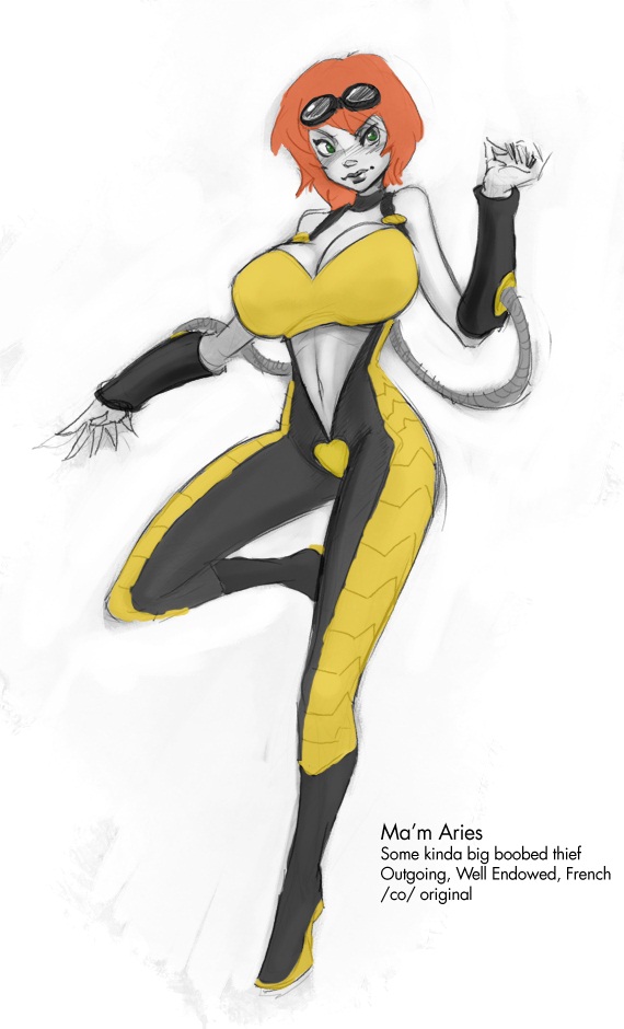 >Alright, well from what I can tell, in this thread we decided Ma'm Ares is, in her secret identity, one of Colettes teachers (possibly Biology, English, or French). She uses a Texan accent while in school, and may go by the name Miss Ewe or Miss Bradock. Jeniffer is her first name. She has a good relationship with Colette in school, and she is one of her favorite teachers. In their villain/hero relationship Ma'm Arese tends to be rather light hearted, to the point of flirting openly with Colette.