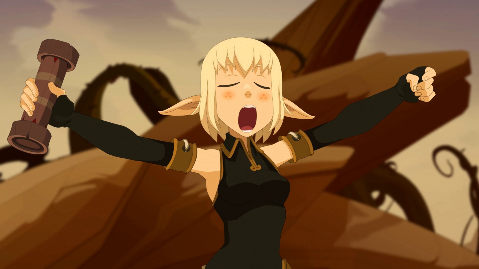 Moving on, the game starts as everything's just fine, you play as Nora, the youngest of the council. You are told by Mina, the priestess of the Eliatrope council, that you have to prepare for something, bla bla bla, turns out Orgonax, a Mechasm, has found the Eliatropes again. You are soon told by Grougaloragran that Qilby has betrayed his people and killed the king. King Yugo. You see, Chibi, the prophet of the Eliatrope crowned Yugo king, something we learn made Qilby very mad. You are told that Qilby has betrayed his people, and long story short, what happened is basically this: Qilby considered the Eliatrope lifestyle that they had now, that king Yugo has led to live, is wrong, and that there is no goddess Eliatrope, and that Eliatropes are meant to roam for planet to planet, collecting the wakfu they need to power their spaceship Mount Zinit.