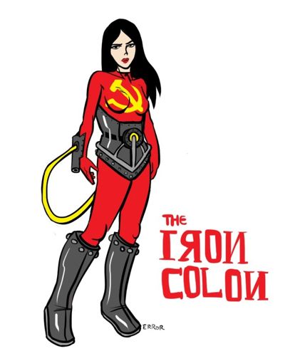 The Iron Colon was a celebrated Russian food critic before a tragic chili cook-off accident, the same that created Windbreaker, ravaged her insides. Now, with her bionic intestines and anus, she swears to make the world suffer the same fires she did that fateful day. (She ate the same chili Windbreaker did. Tried to hold it in instead of letting it out like WB, leading to her accident. Mostly uses her fire-based powers.)
