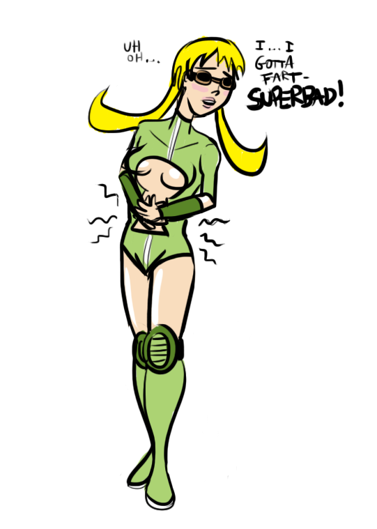 Then we try to explain the joke to you and you get even more butt frustrated, thinking that we're trying to defend it, thus making a bigger stink out of things than necessary by being EVEN MORE SERIOUS in a thread about a joke, attracting even more people who thought it was serious with all the serious posts being made in a fart themed super heroine joke thread.