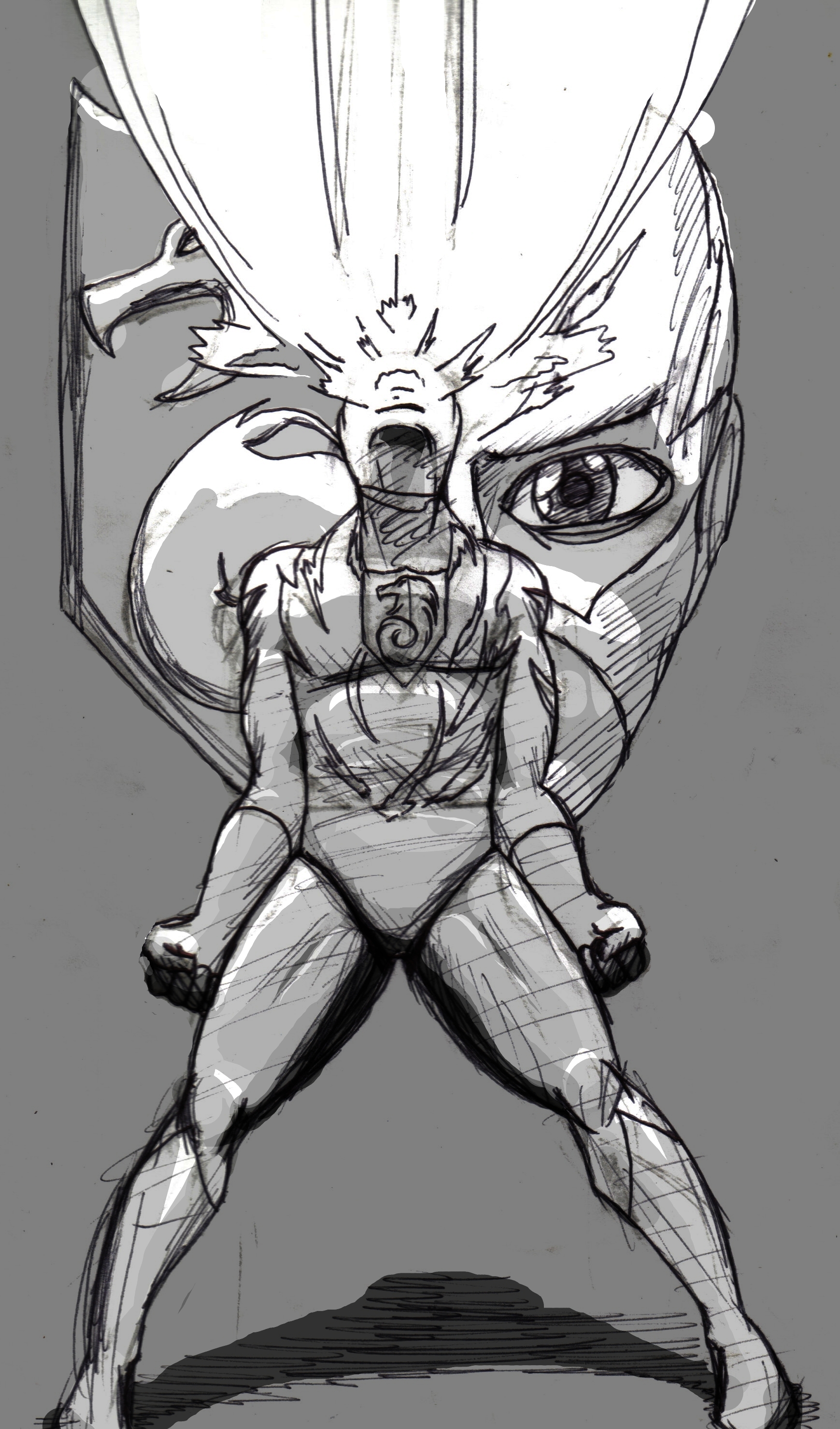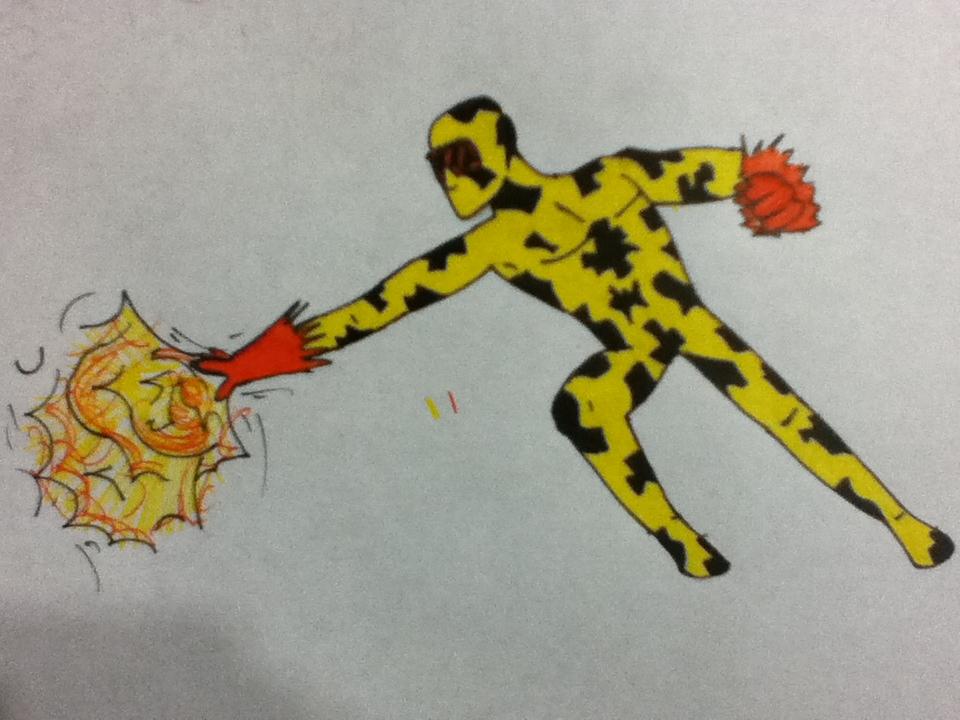 Behold: "Shrapnel", with the power of PUNCH EXPLOSIONS. I'm really happy with how the coloring job came out, and I really like what I thought up of for the suit design.