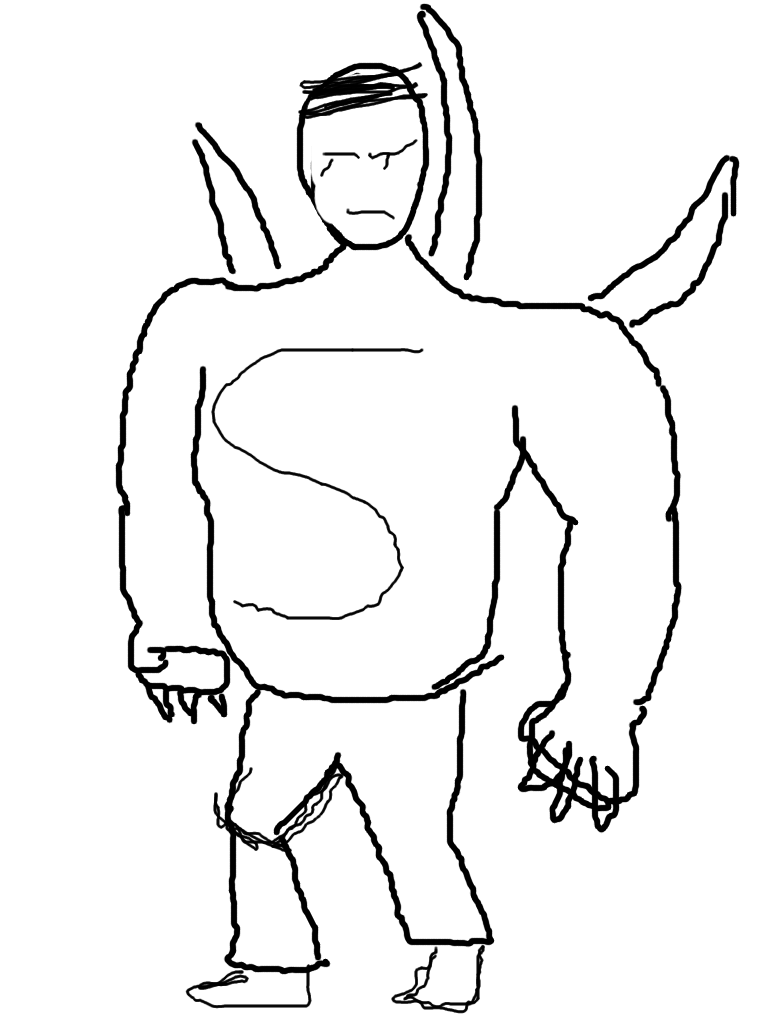 But I REALLY screwed up on his thigh. Like, dayum. Looks like someone stuck a large football in his pant leg. But I'll get better, that's what this month is for! When I get to Day 31, he's gonna have the most bombin'-ass thighs ever.