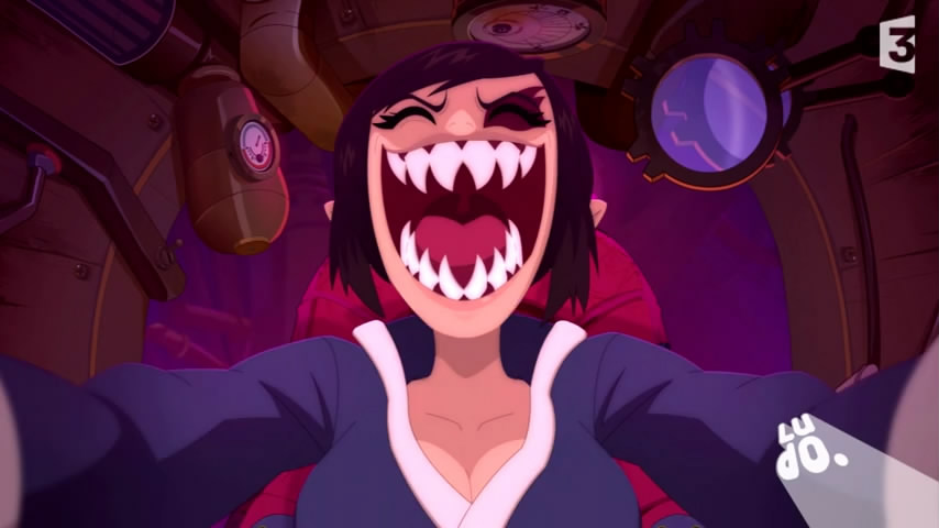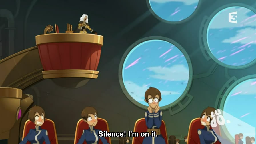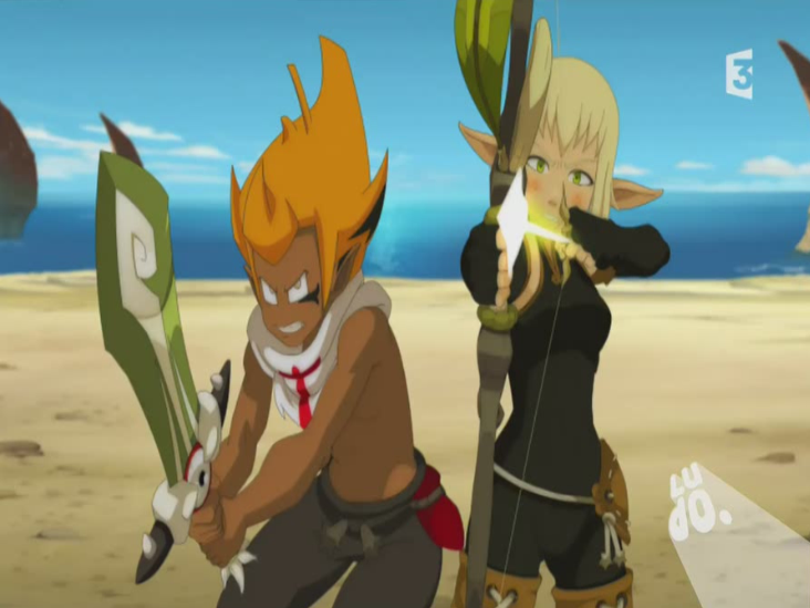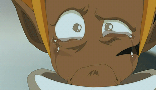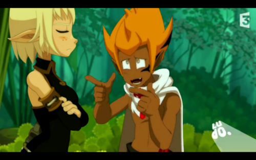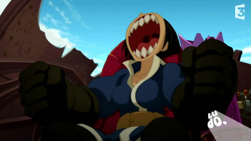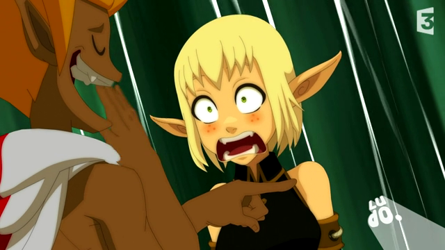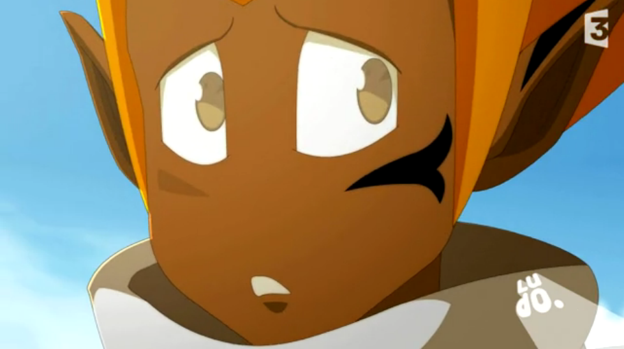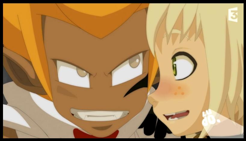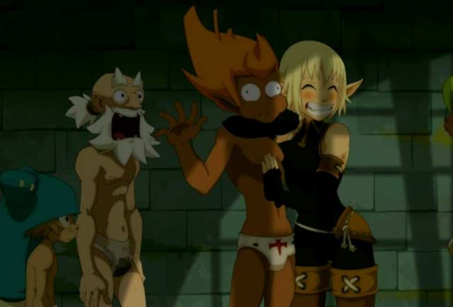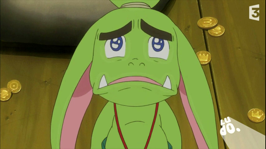 >Cut to a mob outside listening to Amalia playing the “You can’t do this to me! Don’t you know who I am?” card, which works about as well for her as it ever does for anyone. (E.g., U.S. Congresswoman Cynthia McKinney acting outraged that a policeman would stop her as she walked into the Capitol building sans visible ID, or more recently, what Dominique Strauss-Kahn allegedly said to the housekeeper in that New York City hotel). Um, Amalia, honey, you do know that playing the “Don’t you know who I am” card only confirms your status as a jerk to any sane onlooker, right? Meanwhile, further down the street, another voice rises in outrage: it’s Ruel, protesting the ridiculous price the ship owner is asking for his ship. Eighty thousand kamas? Ludicrous! (Incidentally, the fansub gets it wrong here, translating it as eight thousand kamas instead of eighty thousand. But the French dialogue is clearly “quatre-vingt mille”, not “huit mille”.)