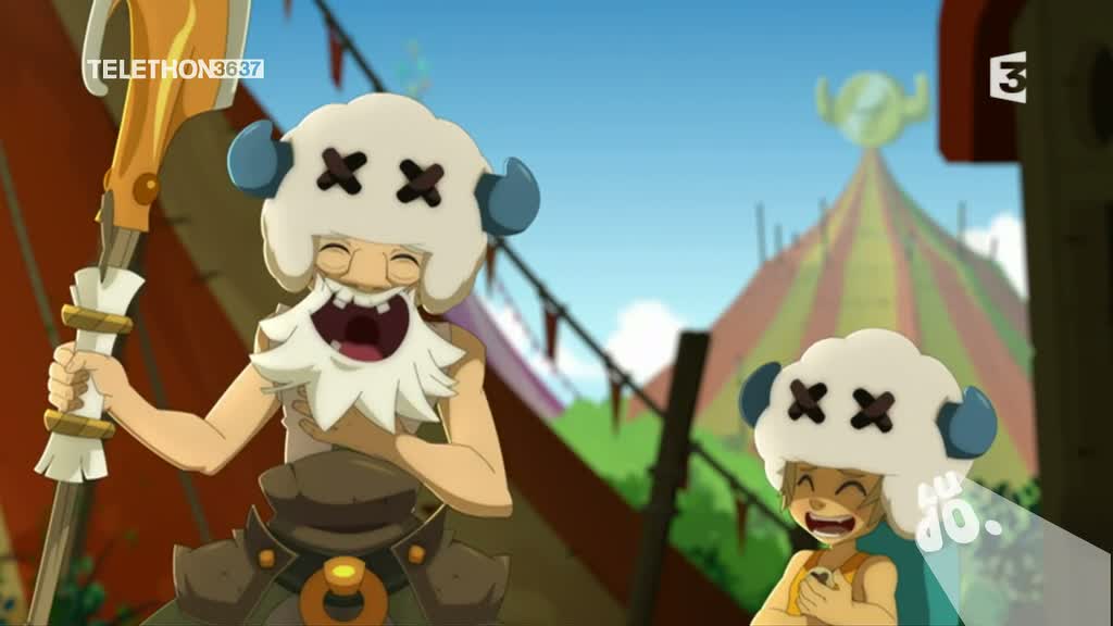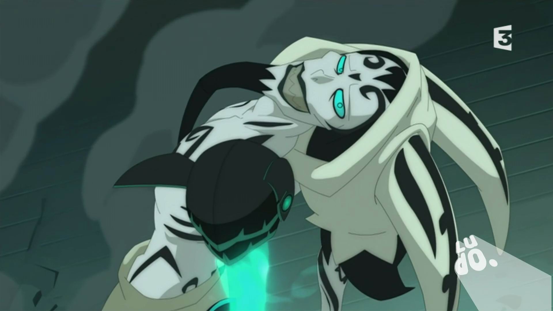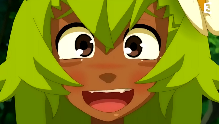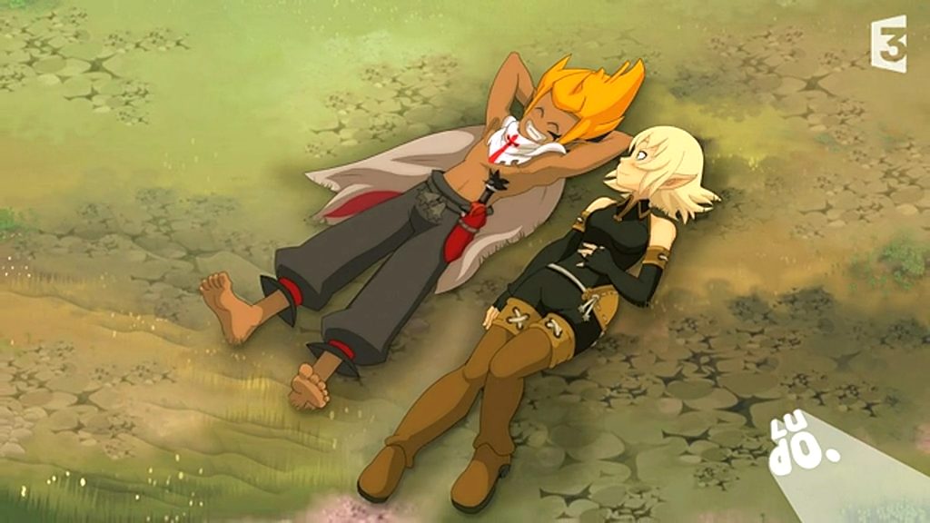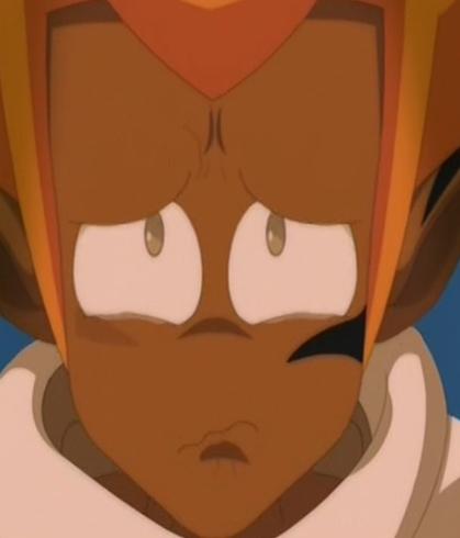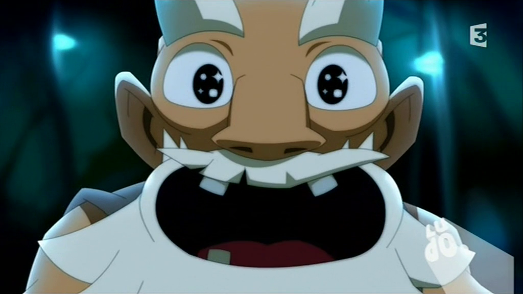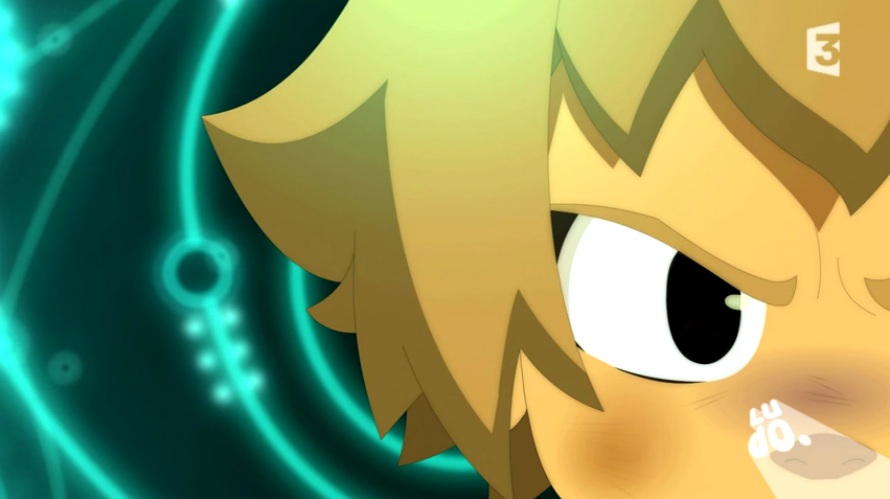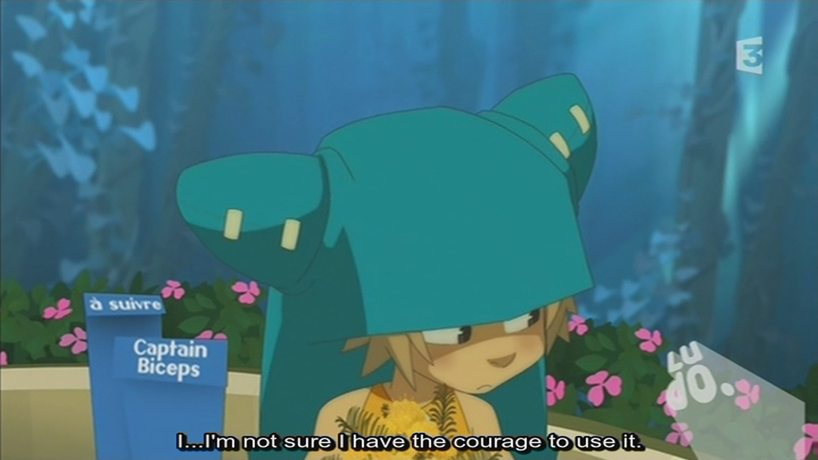 >Anyway, the old Eniripsa draws a healing circle around Ruel with her broomstick. I notice that her healing ability mends not just Ruel’s wounds, but his clothing damage as well. Which is good—I don’t think I want to see what would happen if too much clothing damage accumulated on Ruel. Oh, and the fansub suggests that the Eniripsa’s name is Hope, but I’m pretty sure that that’s wrong. Listening closely to the French audio, what the announcer said is basically “[Let’s] hope the Eniripsa can heal his wounds,” not “Hope, the Eniripsa, can heal his wounds.” In other words, it was a verb, not a noun. Also, given her age, I’m guessing that she’s the team nurse for the Real Boitards, not the stadium nurse who handles injuries to both teams.