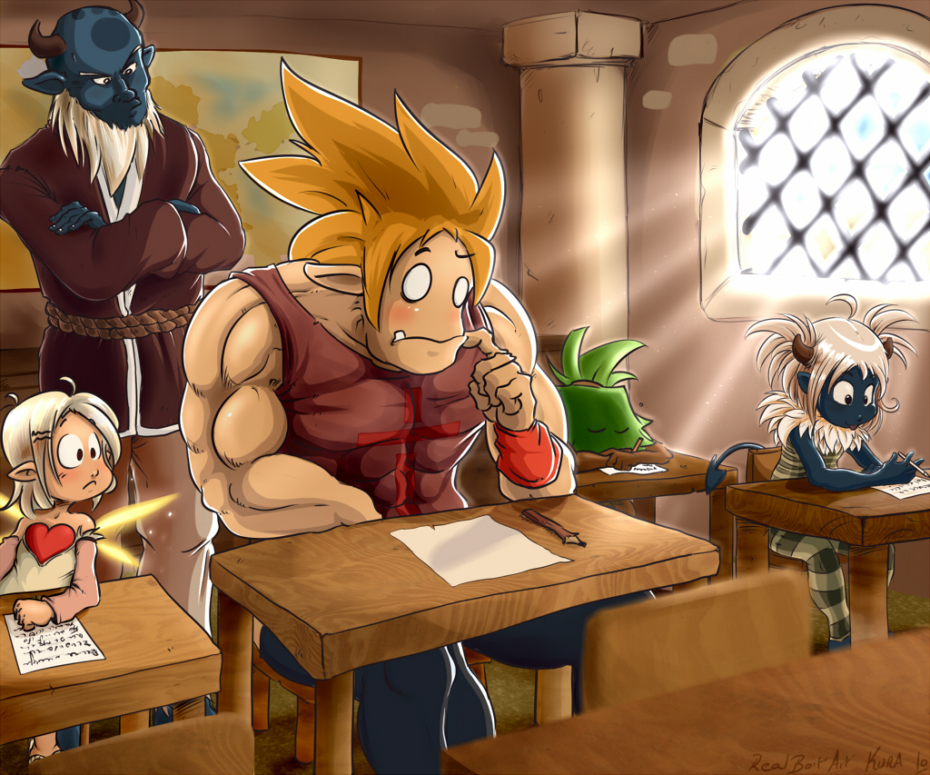 >Hopefully that discussion was as interesting to you as my French-language discussions have been. I don’t expect to get too many linguistic discussions out of this episode (it’s part 2 of 3, so I expect it to be the boufbowl game and nothing but the boufbowl game), so I’m grabbing them where I find them. Anyway, as I was saying, the Real holds (nope, that still looks wrong to me) hold a quick huddle before going back to the game. Ruel suggests a new strategy: let the Wookie win! Sorry, that just slipped out. I mean to say that Ruel suggests fighting smarter, not harder. They’ll lose a straight-up strength contest, so avoid the other team and let them tire themselves out, then take the advantage in the second half once the Bouftons are exhausted.