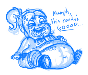 Lots of eating/drinking but no auditory signs of such? Sounds a lot like another cartoon female I know. . .