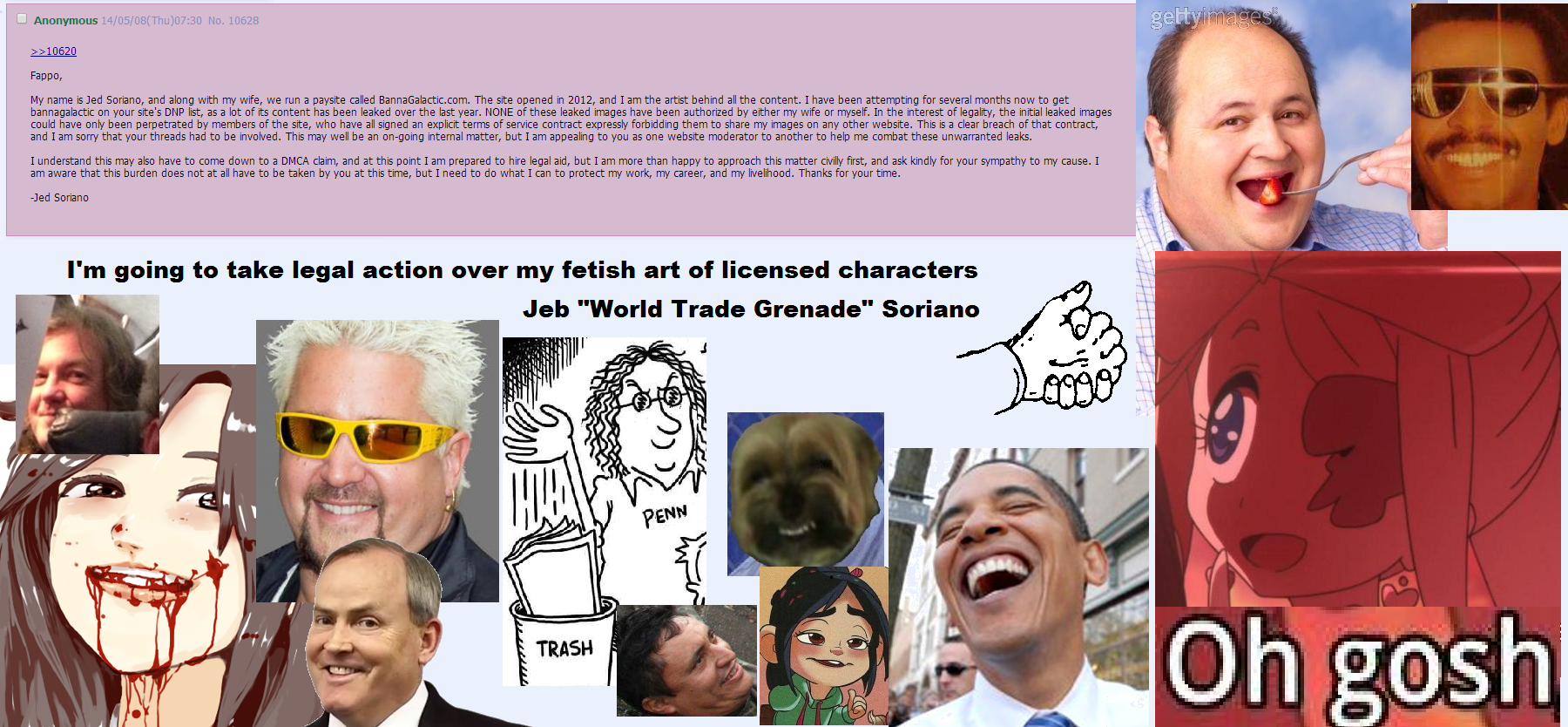 My name is Jed Soriano, and along with my wife, we run a paysite called BannaGalactic.com. The site opened in 2012, and I am the artist behind all the content. I have been attempting for several months now to get bannagalactic on your site's DNP list, as a lot of its content has been leaked over the last year. NONE of these leaked images have been authorized by either my wife or myself. In the interest of legality, the initial leaked images could have only been perpetrated by members of the site, who have all signed an explicit terms of service contract expressly forbidding them to share my images on any other website. This is a clear breach of that contract, and I am sorry that your threads had to be involved. This may well be an on-going internal matter, but I am appealing to you as one website moderator to another to help me combat these unwarranted leaks. I understand this may also have to come down to a DMCA claim, and at this point I am prepared to hire legal aid, but I am more than happy to approach this matter civilly first, and ask kindly for your sympathy to my cause. I am aware that this burden does not at all have to be taken by you at this time, but I need to do what I can to protect my work, my career, and my livelihood. Thanks for your time.