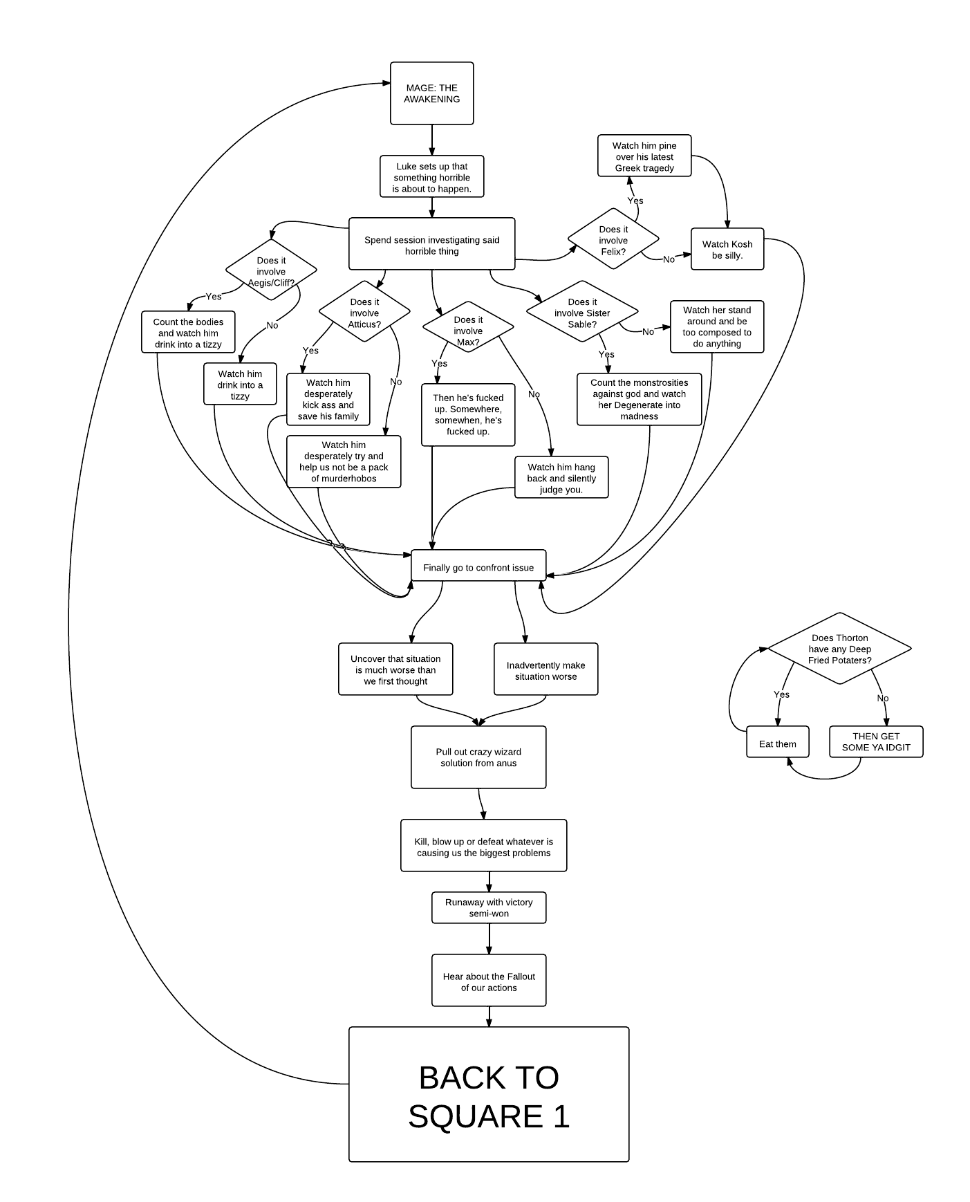 Concerning the WoD of Darkness Discussion, I feel like the old fluff wasn't that great. I was reading through some of the Old Mage stuff a few weeks ago, and while some of it was cool, most of it seemed silly and confining. I'm just relaying my impression of the fluff, here, I couldn't tell you off hand what exactly I didn't like, only that I liked the Sons of Ether and Technocracy a bit. The rest of it was kind of dumb.