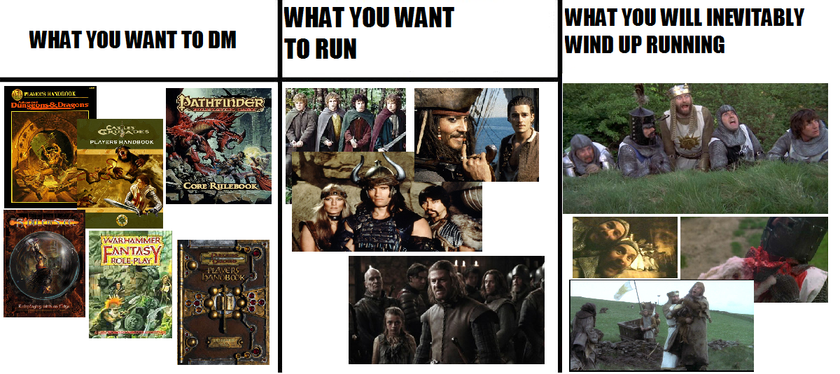 Again, I totally concede that certain feelings and genres work better in different systems. I'd much rather play a pulp game in Savage Worlds or Spirit of the Century, and I'd rather play medieval high fantasy in D&D or Pathfinder, horror in Call of Cthulhu or a Storyteller system, etc. But really, when all you're doing is nitpicking about rules, or a lack thereof, you kind of have to step back and see if you actually want to play role-playing games at all, maybe you're looking for something less structured like a diceless system, online text RP or larping.