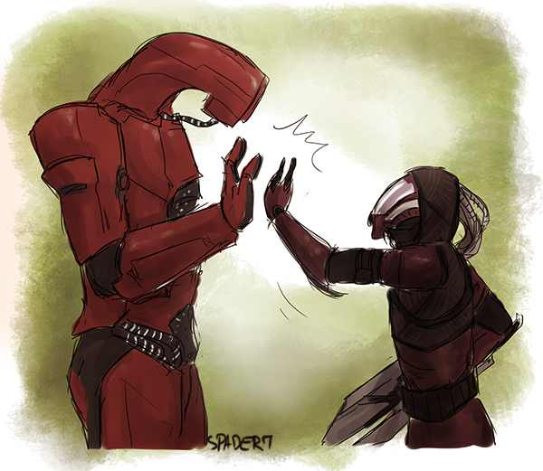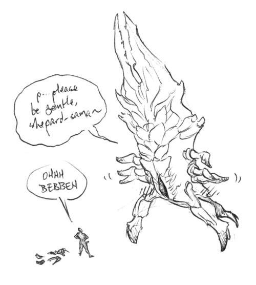 The YMIR swayed, stabilization gyros whining as another wave of exotic rounds struck its hardened chassis. "Firing." Another heavy burst roared forth, dancing across the ground, uncontrolled targeting arrays trying to recalibrate. A turian far away was slapped as he prepared to open his mouth.