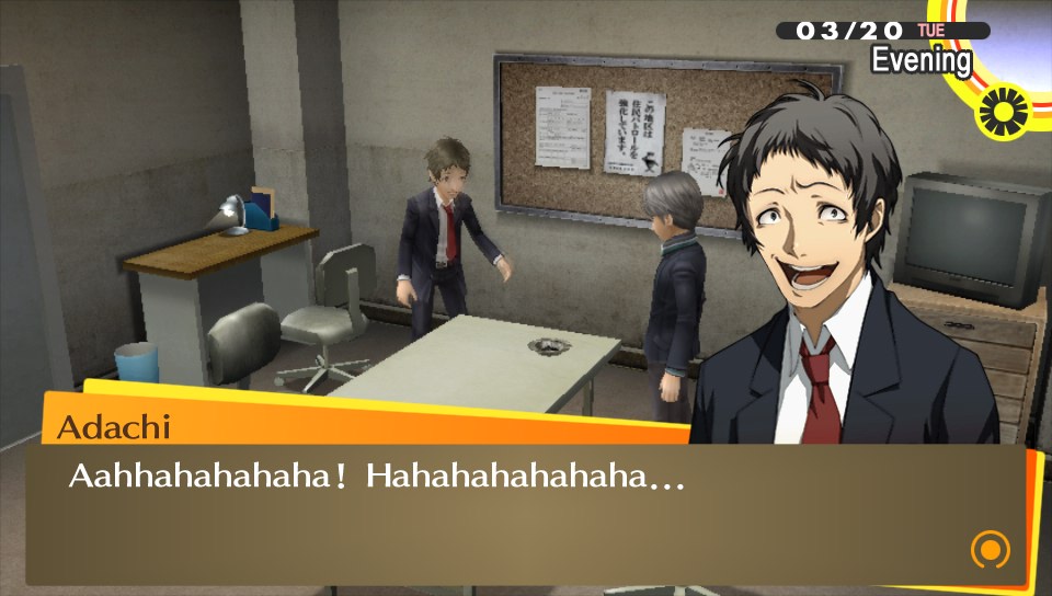 Oh and also FUCK the Adachi social link. Seriously, who ever heard about making a link where you always knew where to approach the guy and what days you could get it down. Not to mention you have to get it up to a certain level before you rescue Nanako so just fuck you if you wanna get his S link without a guide or aren't obsessively looking for Adachi everywhere on every goddamn day.