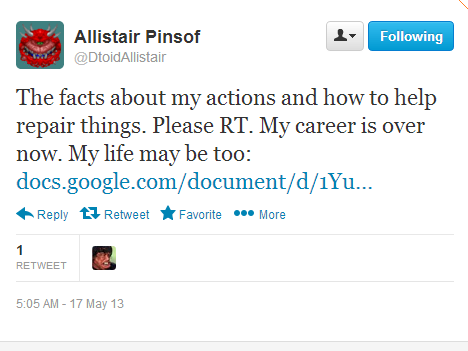http://forum.destructoid.com/showthread.php?29659-Chloe-Sagal-Allistair-Pinsof-and-Destructoid-s-Response&p=1164173&viewfull=1#post1164173