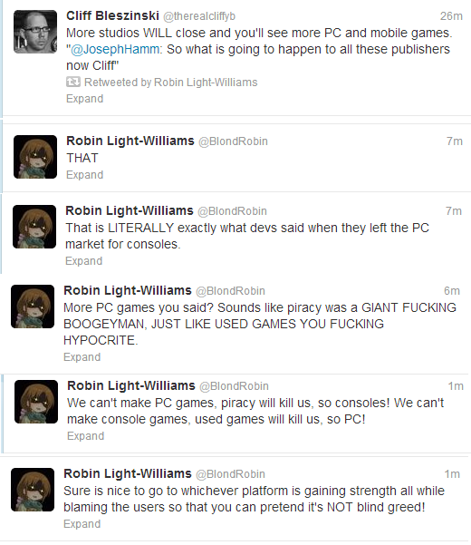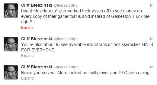*Because every single game, physical or digital, would be tied to an account, publishers could create a hub to sell and resell the games digitally. (There's still nothing stopping ANYONE from doing this. Include a CD key, allow you to resell your KEY to the publisher or some third party company, then that company gets to sell the key again as a digital-only copy, and your disc copy goes in the trash, I guess? Or keep 'em separate, let stores deal with the discs, let the publishers deal with digital copies, and follow EA's online pass -- except do it for access to the game itself, not just multiplayer-- but nobody wants to do it, so deal with the fact that this particular hypothetical probably wasn't going to happen anyway.)